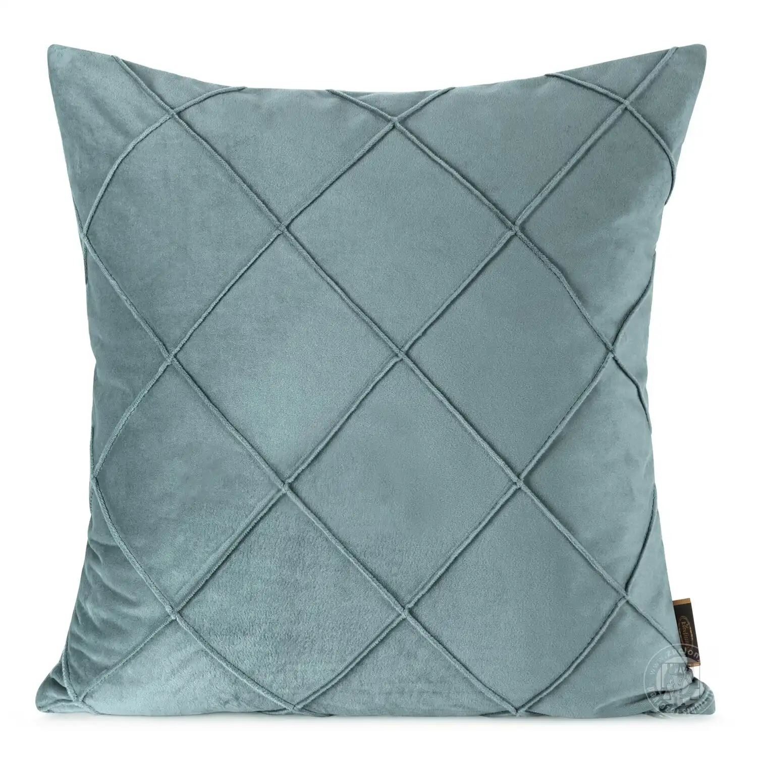 Elegantná svetlomodrá obliečka na vankúš vyrobená zo zamatovej látky. Obliečka je zdobená elegantným prešitím. Geometrické tvary dodávajú obliečke na vankúš moderný charakter, ktorý dokonale dopĺňa zamatovú textúru látky.
