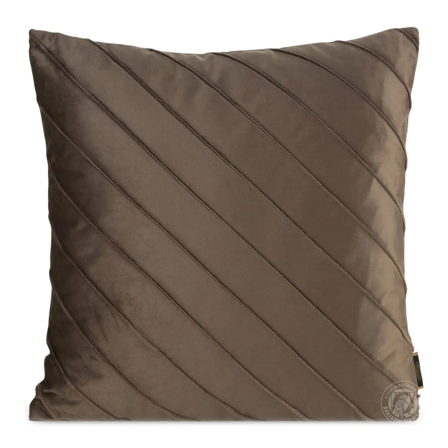 Elegantná tmavobéžová obliečka na vankúš vyrobená zo zamatovej látky. Obliečka je zdobená elegantným prešitím. Geometrické tvary dodávajú obliečke na vankúš moderný charakter, ktorý dokonale dopĺňa zamatovú textúru látky.