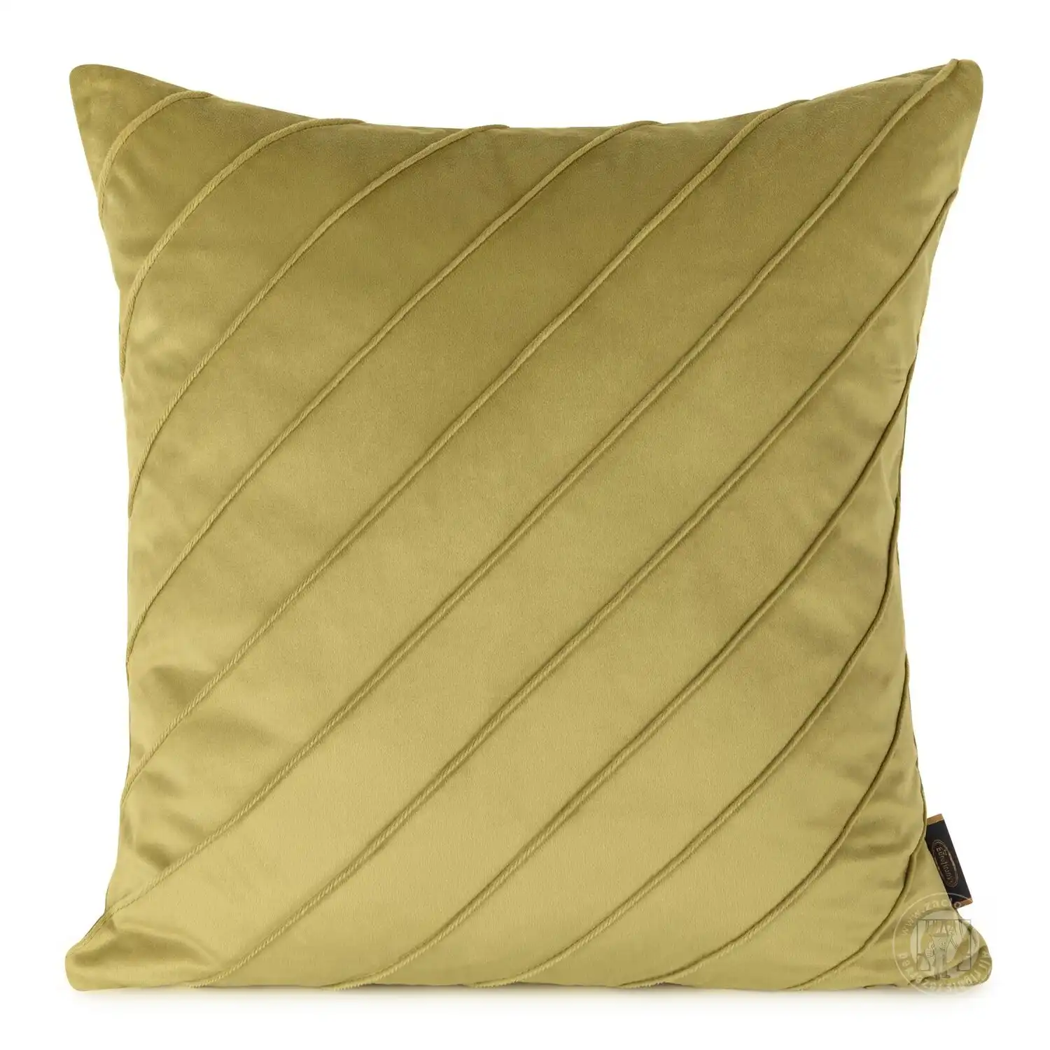 Elegantná limetková obliečka na vankúš vyrobená zo zamatovej látky. Obliečka je zdobená elegantným prešitím. Geometrické tvary dodávajú obliečke na vankúš moderný charakter, ktorý dokonale dopĺňa zamatovú textúru látky.