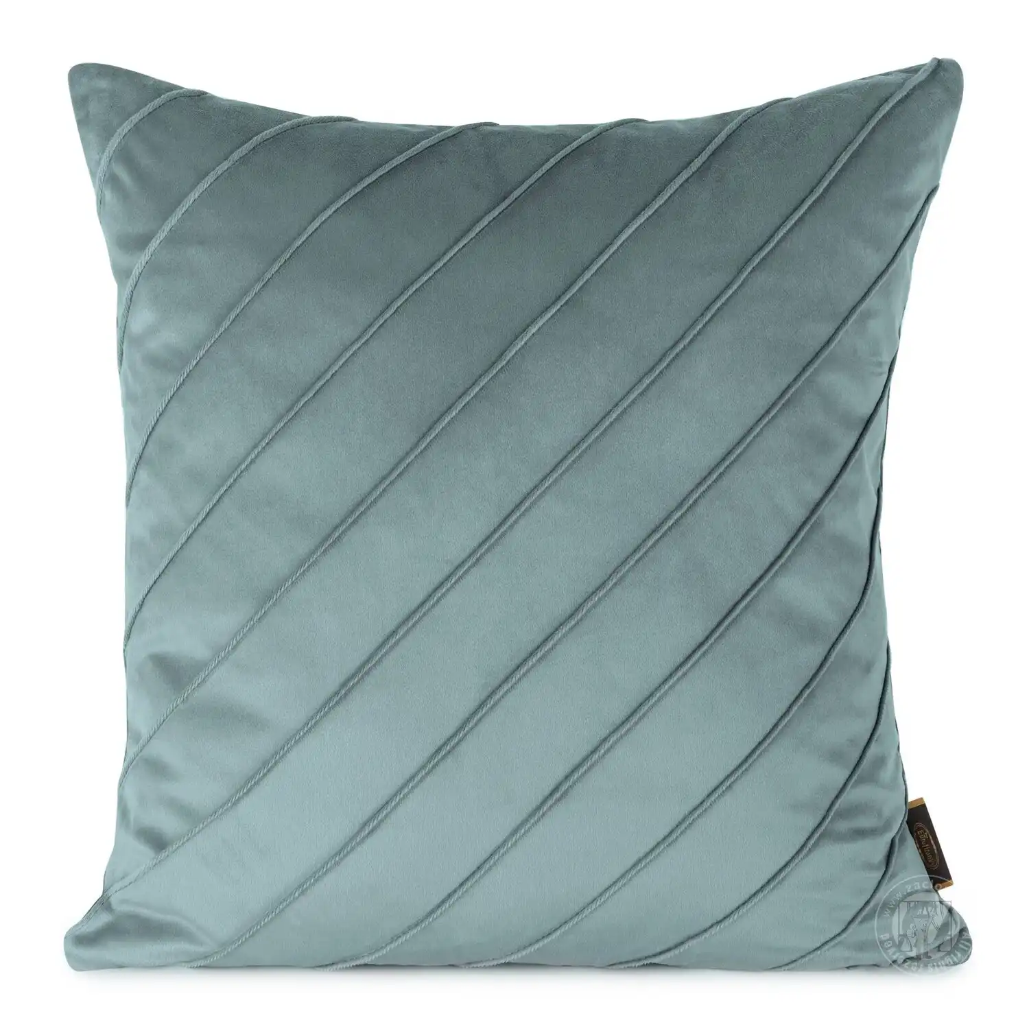 Elegantná svetlomodrá obliečka na vankúš vyrobená zo zamatovej látky. Obliečka je zdobená elegantným prešitím. Geometrické tvary dodávajú obliečke na vankúš moderný charakter, ktorý dokonale dopĺňa zamatovú textúru látky.