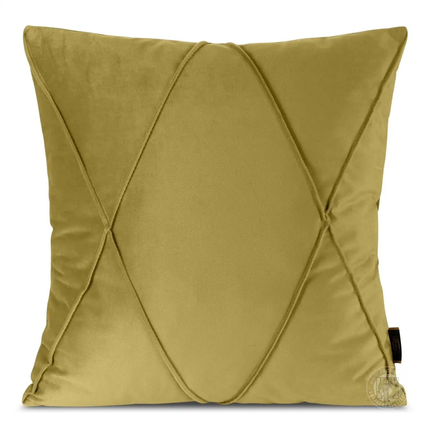 Elegantná limetková obliečka na vankúš vyrobená zo zamatovej látky. Obliečka je zdobená elegantným prešitím. Geometrické tvary dodávajú obliečke na vankúš moderný charakter, ktorý dokonale dopĺňa zamatovú textúru látky.