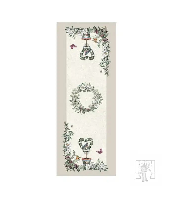 Gobelínový behúň na stôl s motívom lúčnych kvetov. Obrus navrhnutý z hrubej gobelínovej tkaniny zdobený kvetinovým vzorom je dekoráciou pripomínajúcou vintage štýl. Hrubšia tkanina zaručuje krásny efekt a vzor dosiahnutý technikou tkania spôsobuje, že obrus vyzerá krásne v interiéri v rustikálnom štýle aj v romantickej štylizácii.