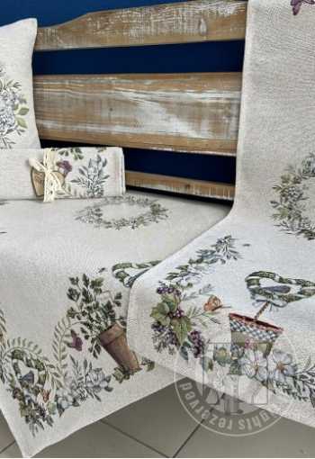 Obrus navrhnutý z hrubej gobelínovej tkaniny zdobený kvetinovým vzorom je dekoráciou pripomínajúcou vintage štýl. Hrubšia tkanina zaručuje krásny efekt a vzor dosiahnutý technikou tkania spôsobuje, že obrus vyzerá krásne v interiéri v rustikálnom štýle aj v romantickej štylizácii.