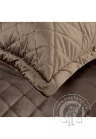 Elegantný hnedý prehoz vyrobený z vysoko kvalitnej zamatovej látky je jedinečným doplnkom každej spálne. Jeho povrch je zdobený precíznym prešívaním, ktoré vytvára geometrický vzor, ktorý dodáva celému prehozu moderný a štýlový charakter. Jemný lesk zamatu jemne odráža svetlo a dodáva interiéru noblesu.