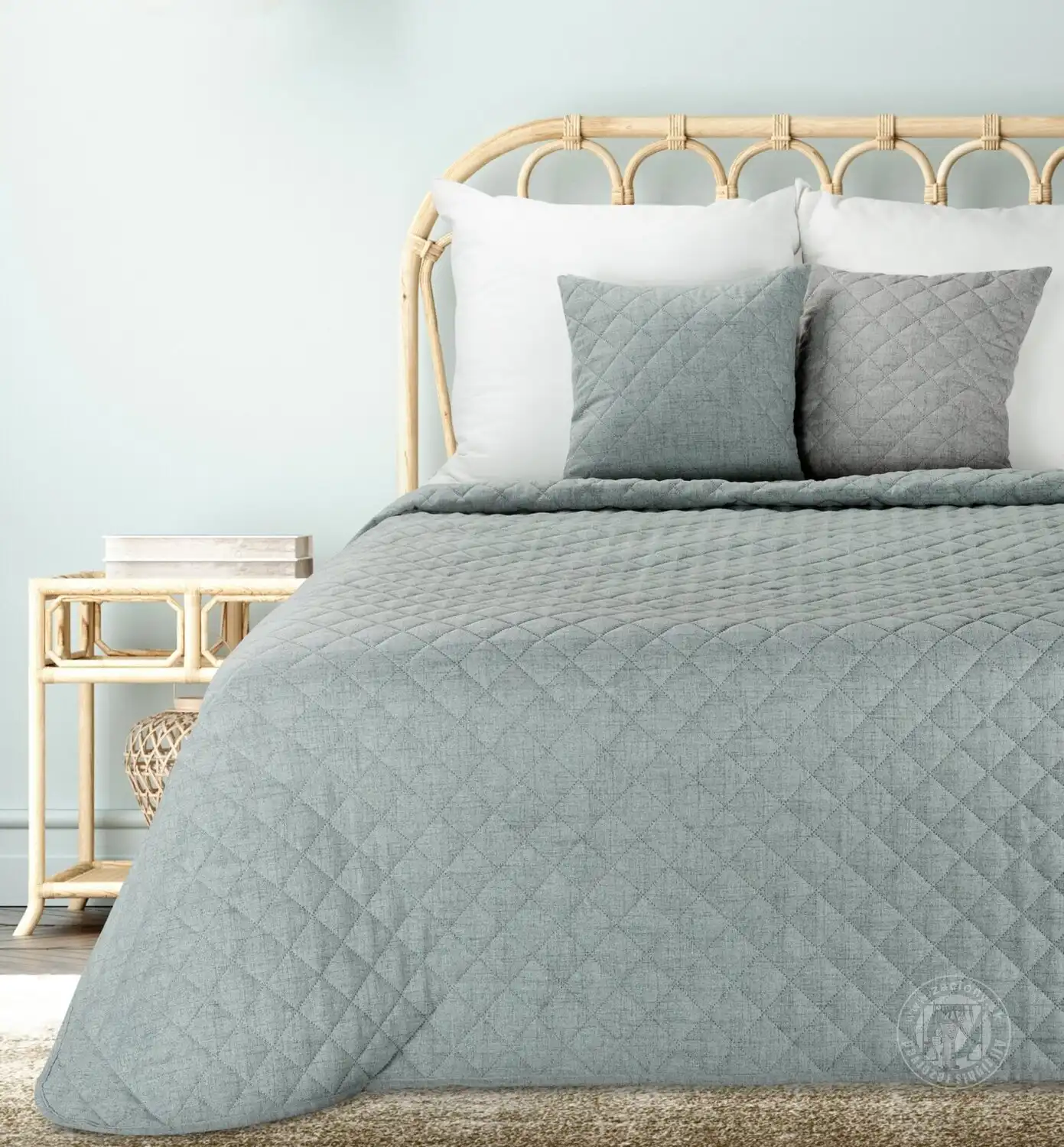 S ohľadom na moderné a štýlové spálne sme pripravili kolekciu jednofarebných prehozov z látky imitujúcej prírodný ľan. Štýlový prešívaný prehoz na posteľ s geometrickým kosoštvorcovým vzorom dodá spálni moderný nádych. Vďaka vrstve pružnej výplne prehoz mäkko obopína posteľ, vďaka čomu spálňa pôsobí esteticky a módne. Moderný spôsob prešívania bez nití (hotpress) zvyšuje odolnosť materiálu, čím prehoz získava dlhšiu životnosť. Mäkká a na dotyk príjemná spodná časť prehozu z mikrovlákna zabezpečuje, že prehoz priľne k posteľnej bielizni a vždy zostane na svojom mieste.