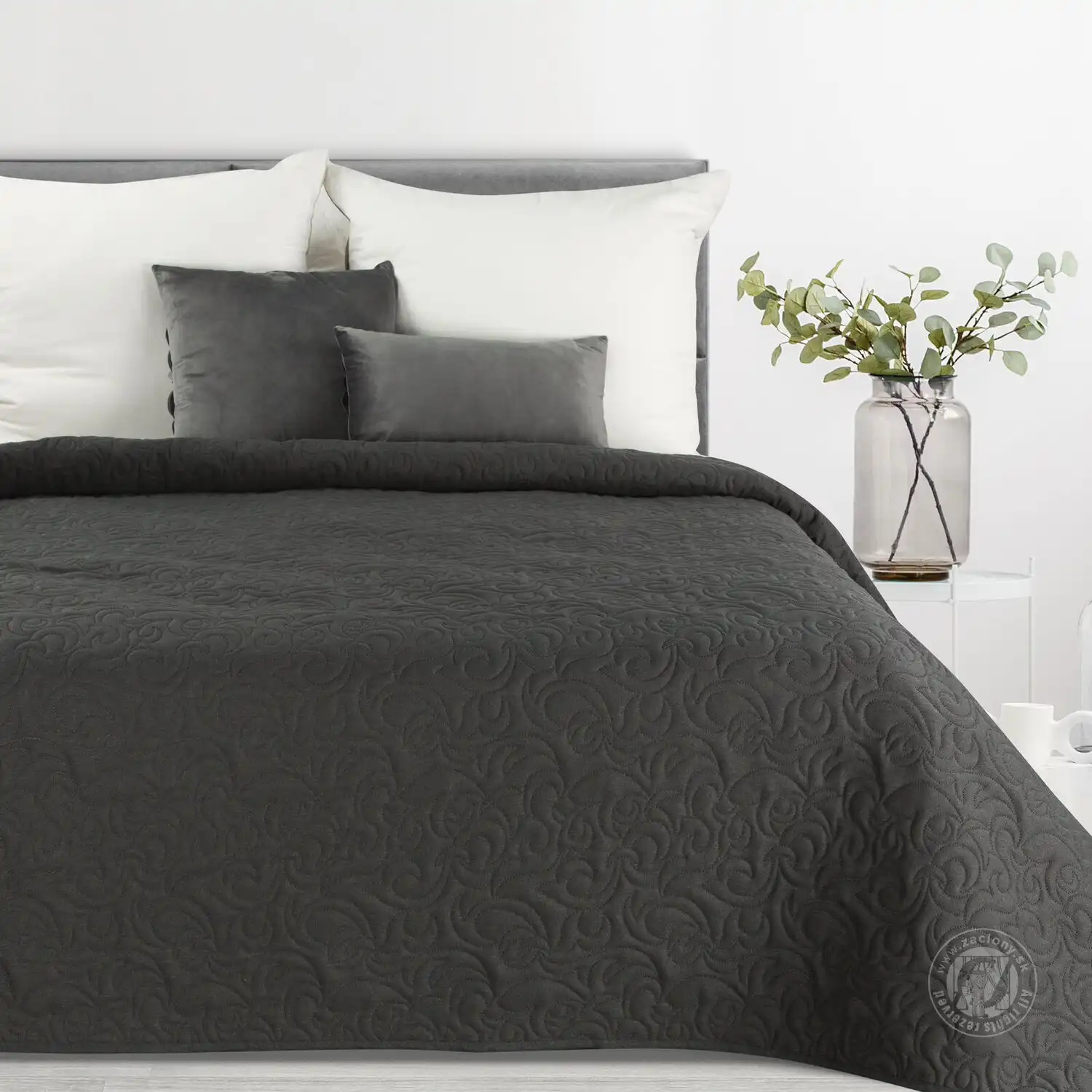 Prehoz na posteľ s ľanovou štruktúrou LEN4 220x240 cm grafitový
