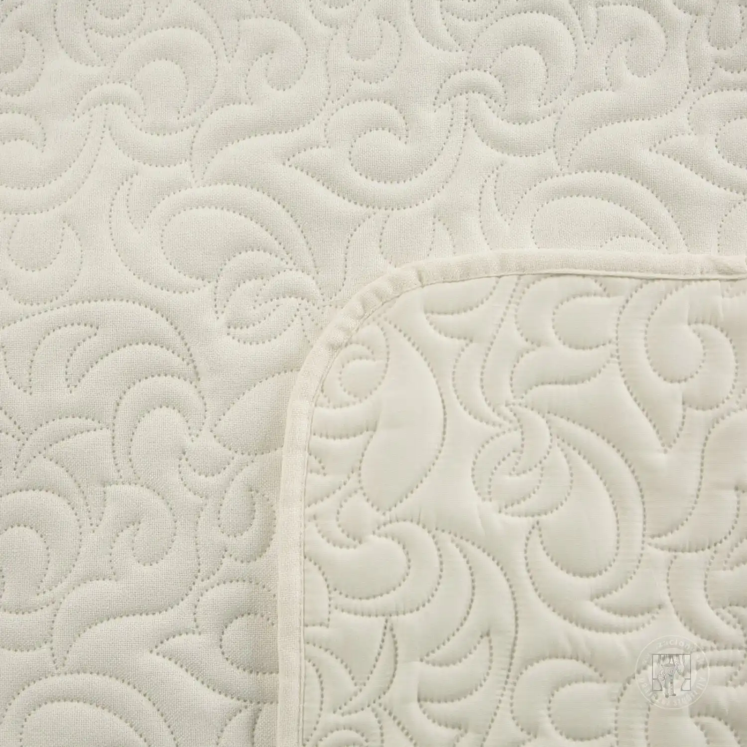 Jednofarebný prehoz LEN 4 je elegantným a funkčným doplnkom každej spálne. Jeho jednotná farba a jemná textúra imitujúca prírodný ľan mu dodávajú klasický a nadčasový vzhľad, ktorý dokonale ladí s rôznymi štýlmi interiéru. Prešívanie horúcim lisom nielen zdôrazňuje estetiku prehozu, ale zaisťuje aj jeho trvácnosť a odolnosť voči deformácii. Vďaka vysokej kvalite spracovania prehoz nielen krásne vyzerá, ale poskytuje aj pohodlie a dokonale ladí s vašou posteľou.