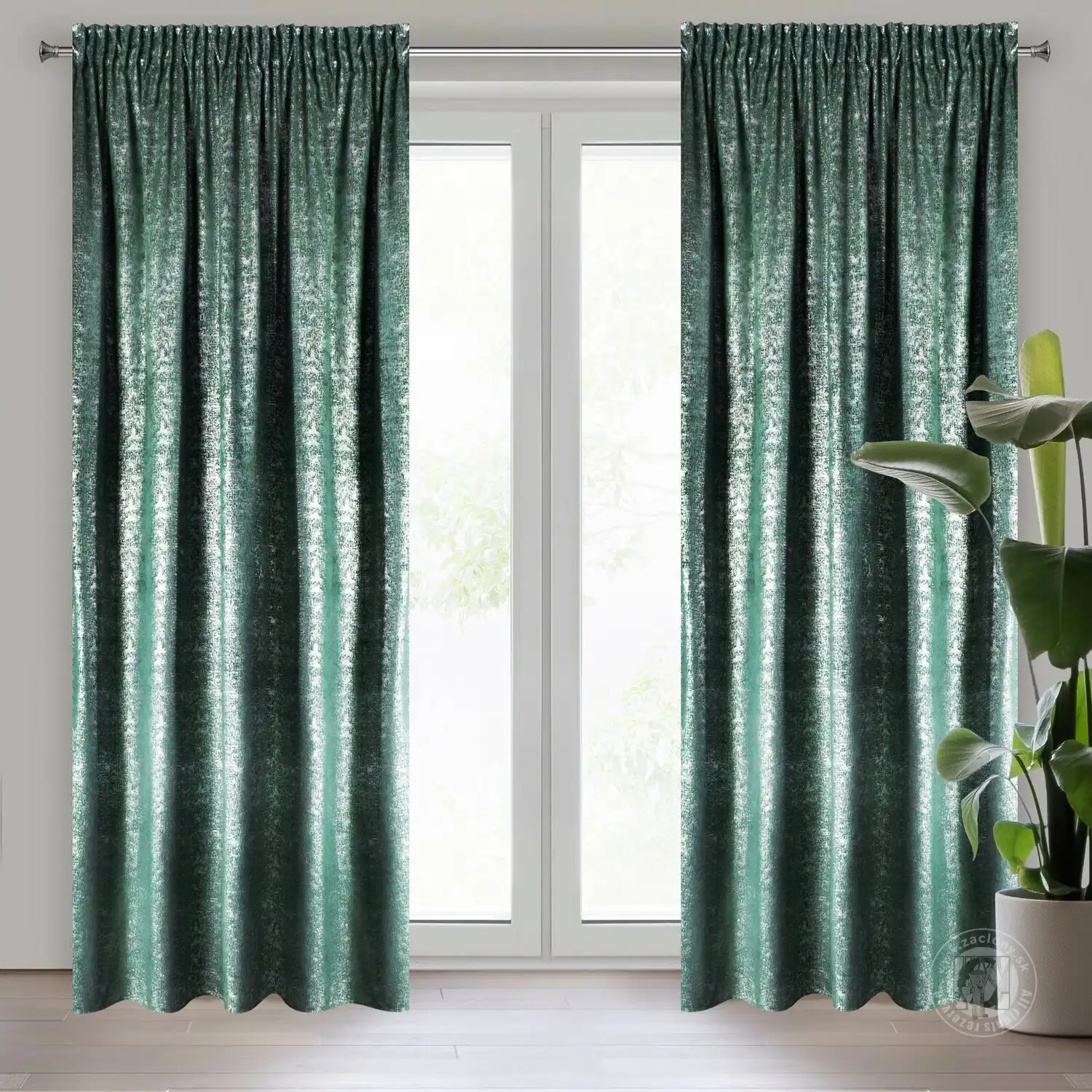 Záves z mäkkej zamatovej látky s nepravidelnou striebornou potlačou poteší milovníkov módnych, lesklých doplnkov. Hrubšia, kompaktná a zamatová tkanina dobre zakrýva okno, čo znamená, že účinne chráni váš interiér pred prebytočným svetlom a poskytuje večernú príjemnú klímu a pocit súkromia pomocou umelého osvetlenia. Strieborná potlač sa fenomenálne leskne a osvetľuje interiér. Táto kolekcia obsahuje niekoľko mimoriadne módnych, tlmených odtieňov.