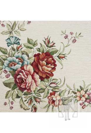 Obrus vyrobený z hrubej gobelínovej látky s mäkkou ženilkovou niťou a zdobený kvetinovým vzorom je dekoráciou pripomínajúcou retro štýl. Hrubšia žakárová látka zaručuje krásny dekoratívny efekt a vzor získaný technikou tkania dodáva obrusu krásny vzhľad v rustikálnom aj romantickom interiéri. Vysokokvalitná látka, ktorá je zmesou polyesterových, akrylových a bavlnených vlákien, sa ľahko udržiava a nekrčí sa. Starostlivé spracovanie zaručuje spokojnosť s výrobkom a motív kvitnúcich kvetov dokonale oživuje interiér, vnáša do aranžmánu sviežosť a pozitívnu náladu.