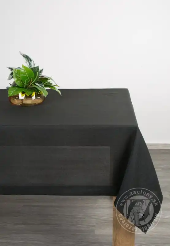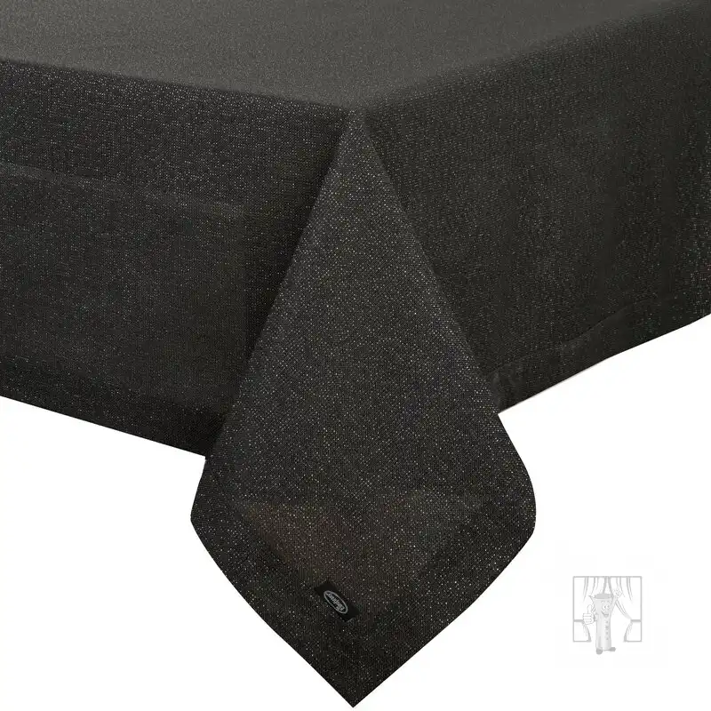 Elegantné prestretie stola urobí každú oslavu výnimočnou a dlhotrvajúcou. Obrus v čiernej farbe sa vyznačuje tkaninou pripomínajúcou plátno a efektným lemom. Látka je pretkaná striebornou niťou, ktorá dodáva nádych elegancie a luxusu.