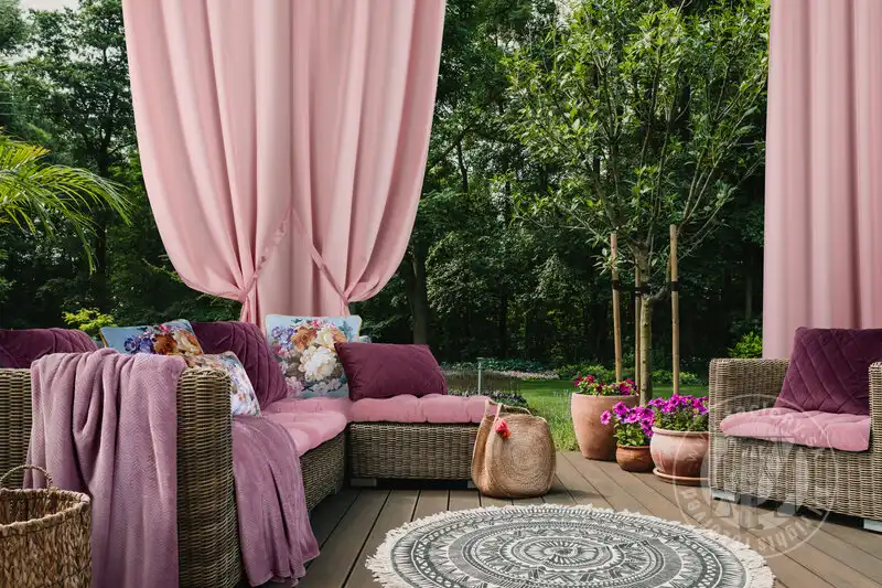 Ľahká tkanina s plátennou štruktúrou má stredný stupeň zatemnenia, preto umožňuje prenikanie prirodzeného svetla.
