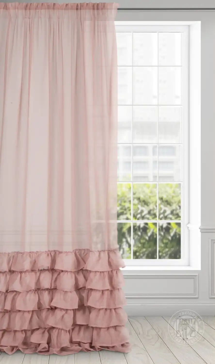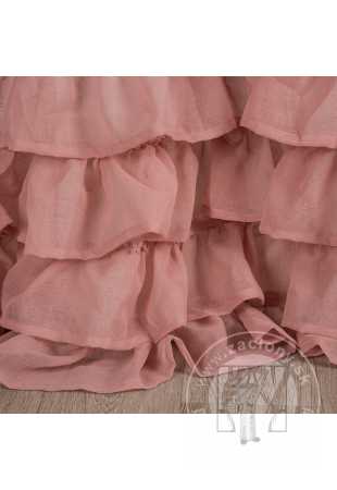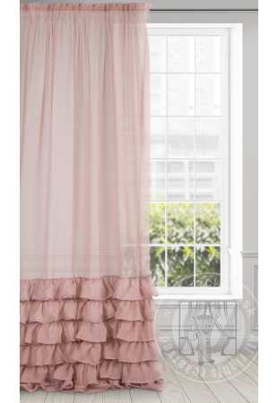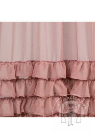Záclona DOLLY s pôvabnými volánikmi v španielskom štýle, ktoré sú všité zo spodnej časti. Záclona DOLLY má praktickú riasaciu pásku s tunelovou funkciou, ktorá vám umožňuje zavesiť záclonu na záclonovú tyč pomocou klipov/háčikov alebo ju pripevniť k tyči. Táto dekorácia sa hodí do romantických aj glamour interiérov.