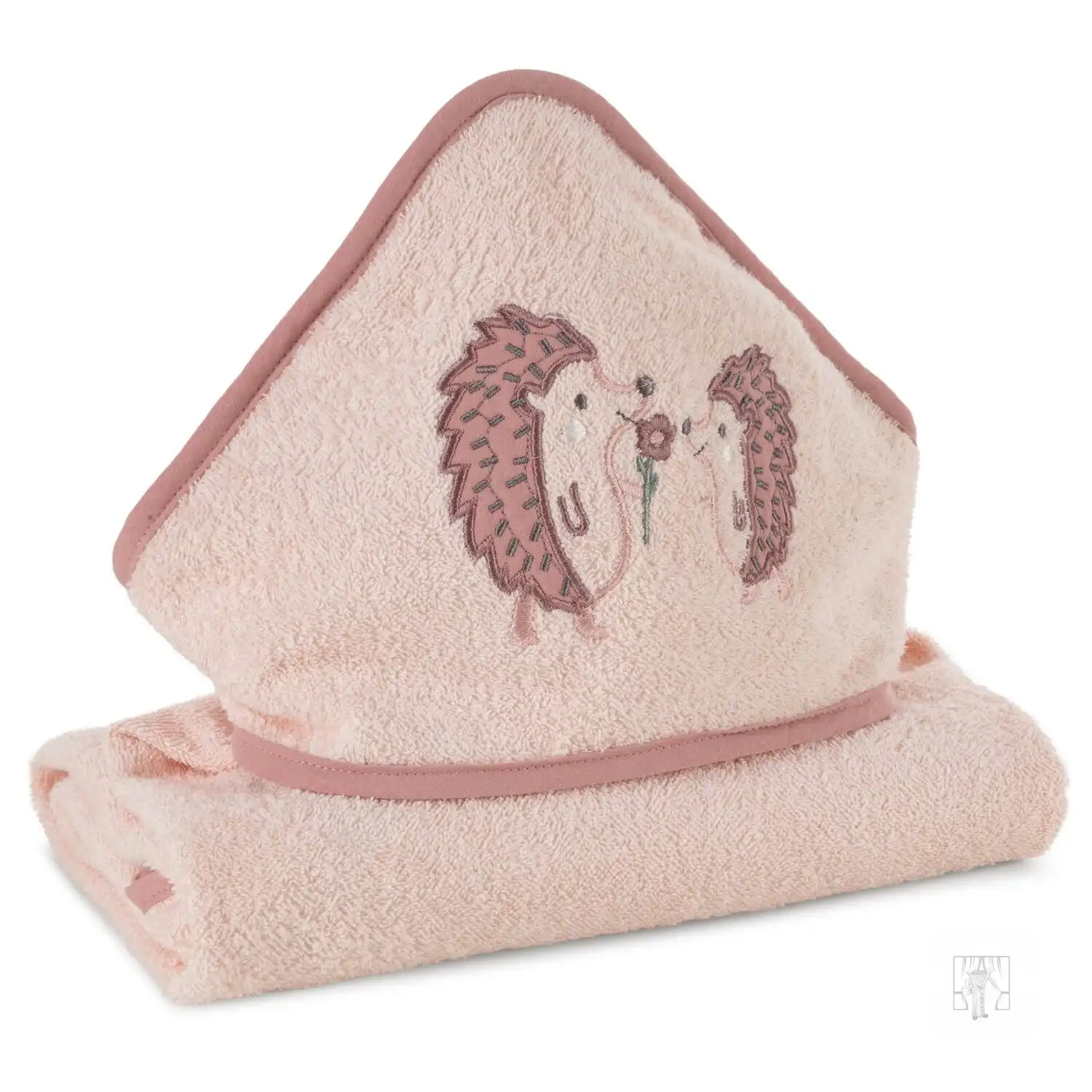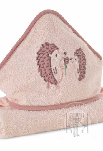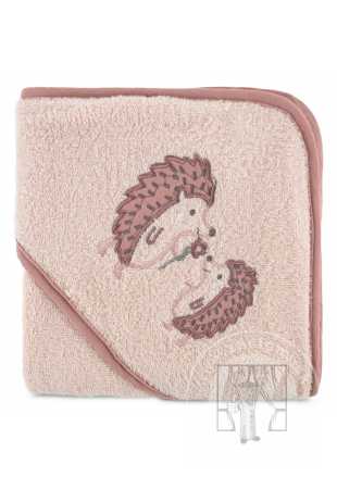Detská osuška s kapucňou BABY 100x100cm ružová s ježkom