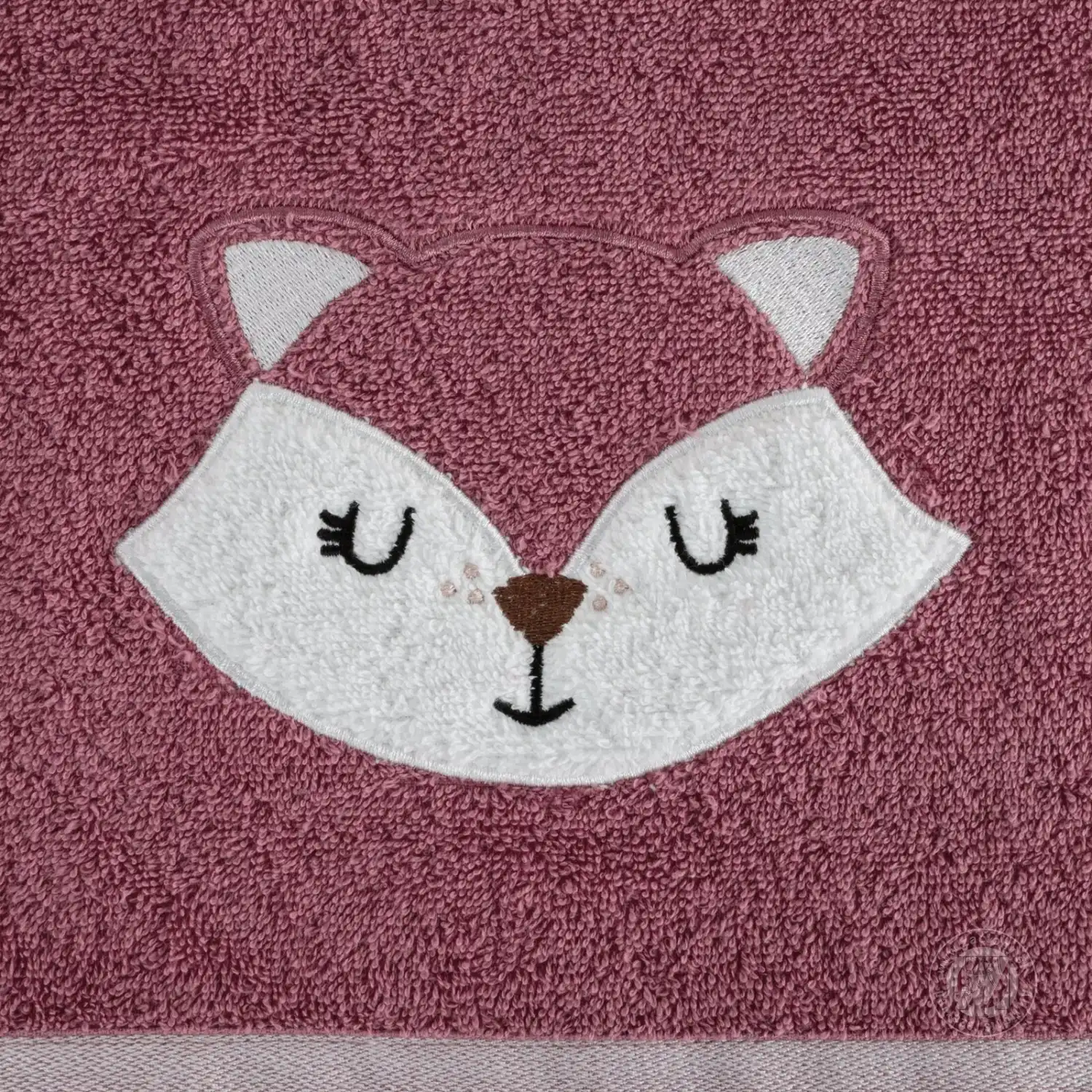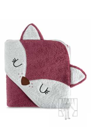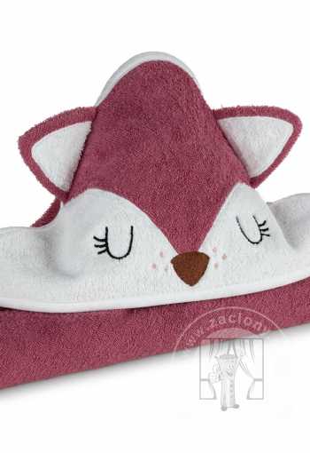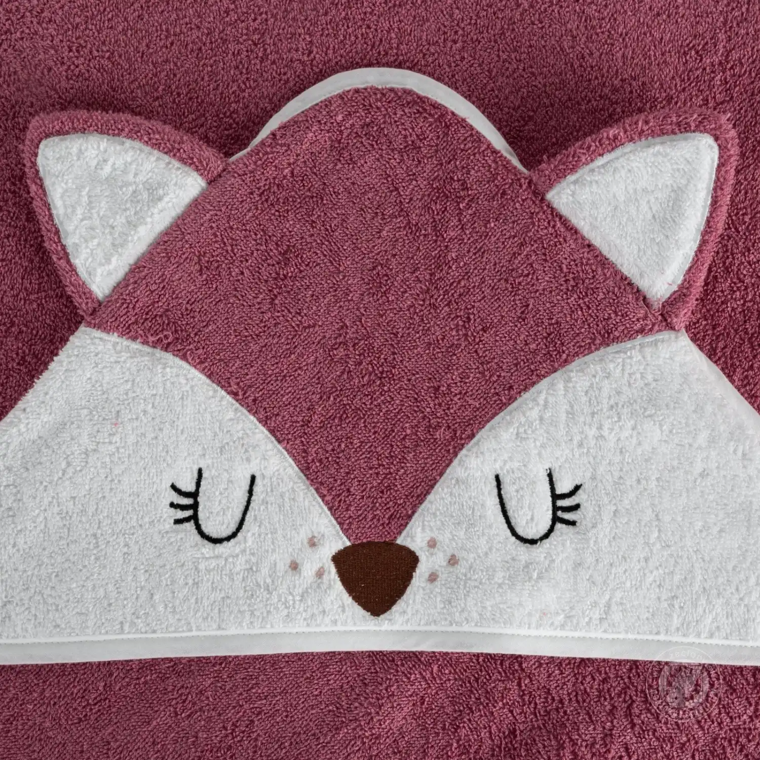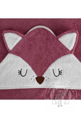 Detská osuška s kapucňou BABY 100x100cm tmavoružová s líškou
