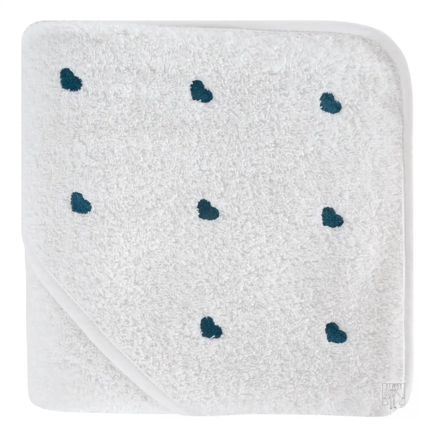 Detská osuška s kapucňou BABY 100x100cm biela s modrými srdiečkami