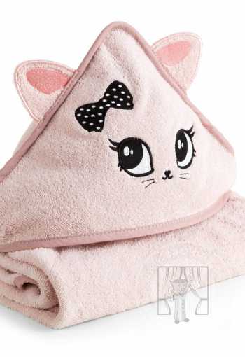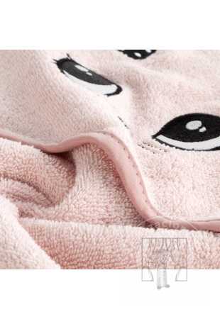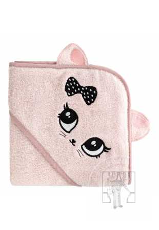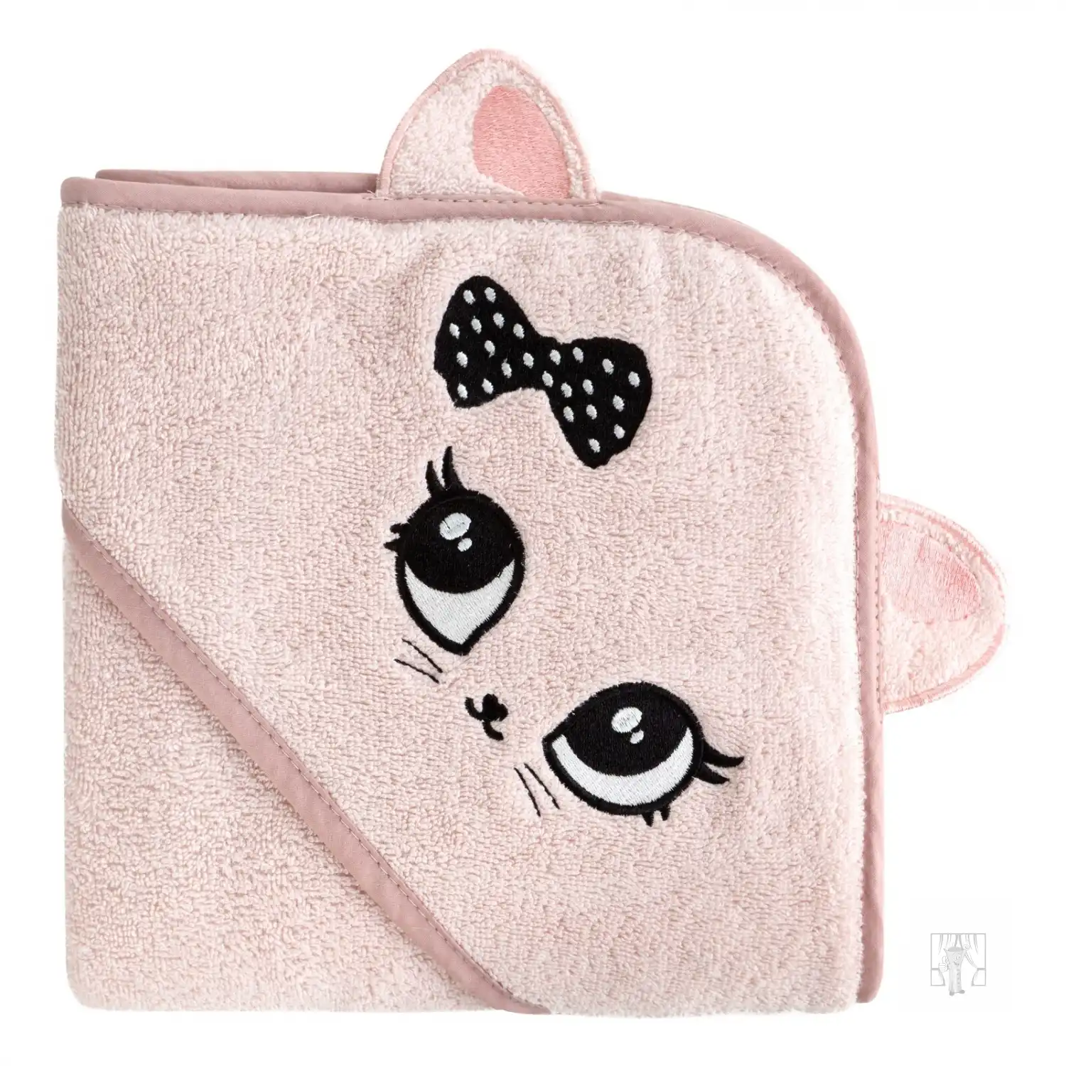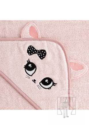 Detská osuška s kapucňou BABY 100x100cm ružová s mačiatkom
