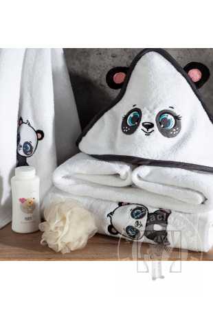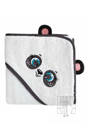 Detská osuška s kapucňou BABY 100x100cm biela s pandou