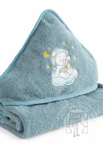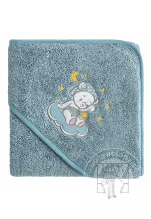 Detská osuška s kapucňou BABY 100x100cm modrá s medvedíkom