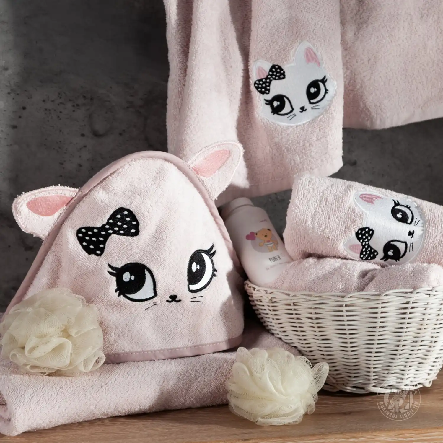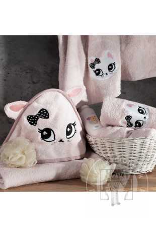 Detské pončo s kapucňou BABY 60x120cm ružové s mačiatkom