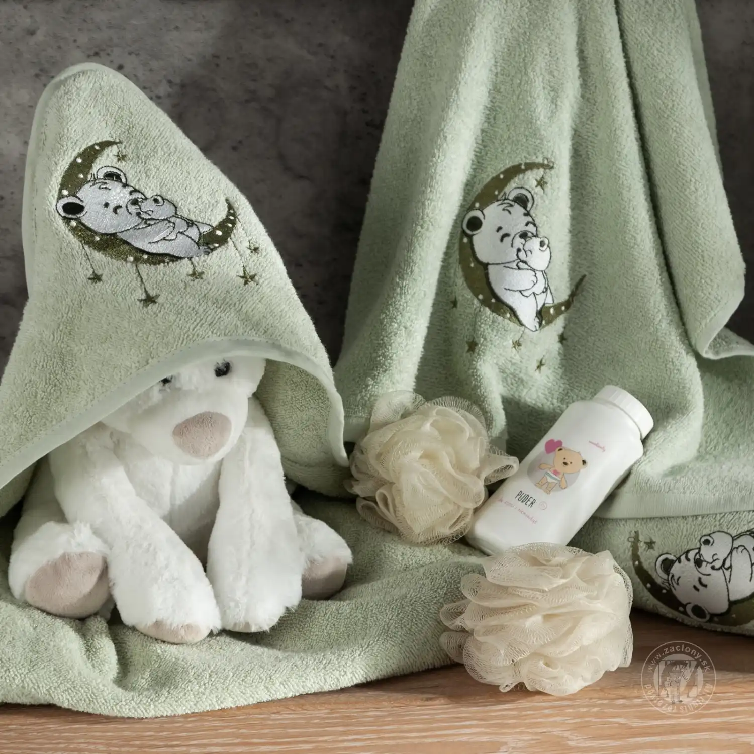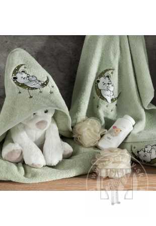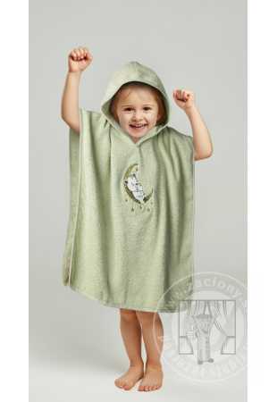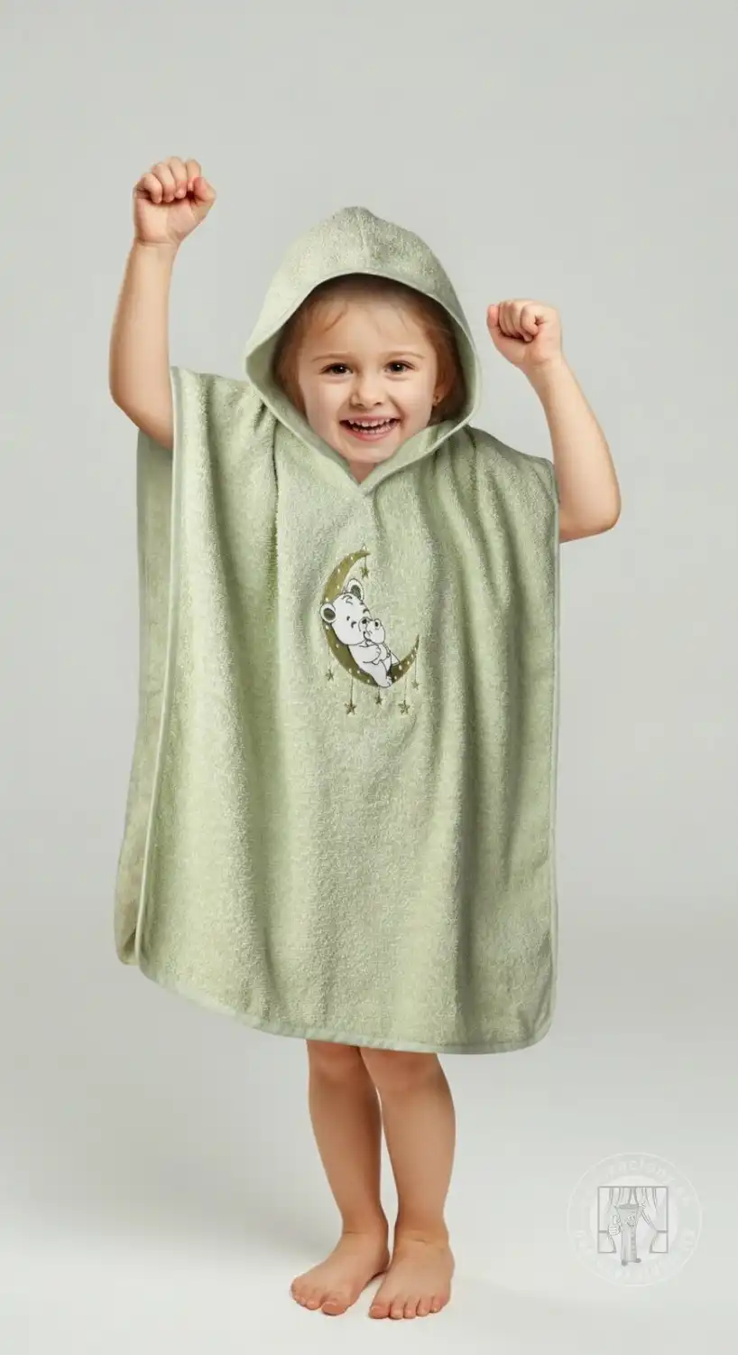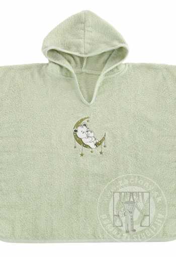 Detské pončo s kapucňou BABY 60x120cm zelené s medvedíkom