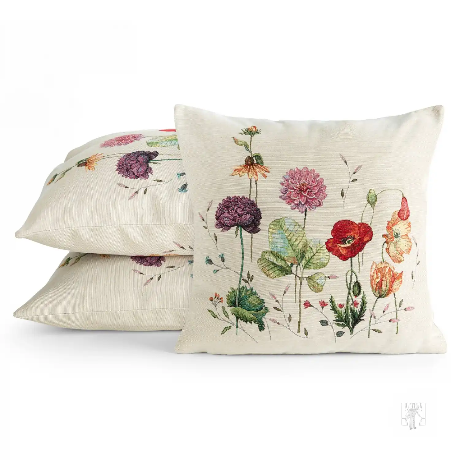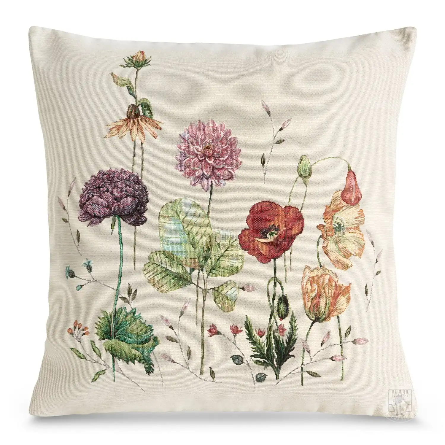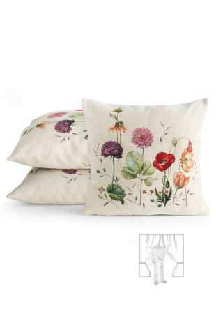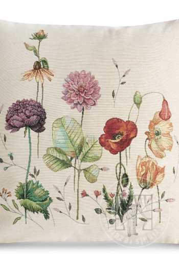 Gobelínová obliečka na vankúš 45x45cm naturálna s letnými kvetmi