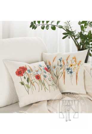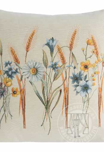 Gobelínová obliečka na vankúš 45x45cm s lúčnymi kvetmi a margarétkami