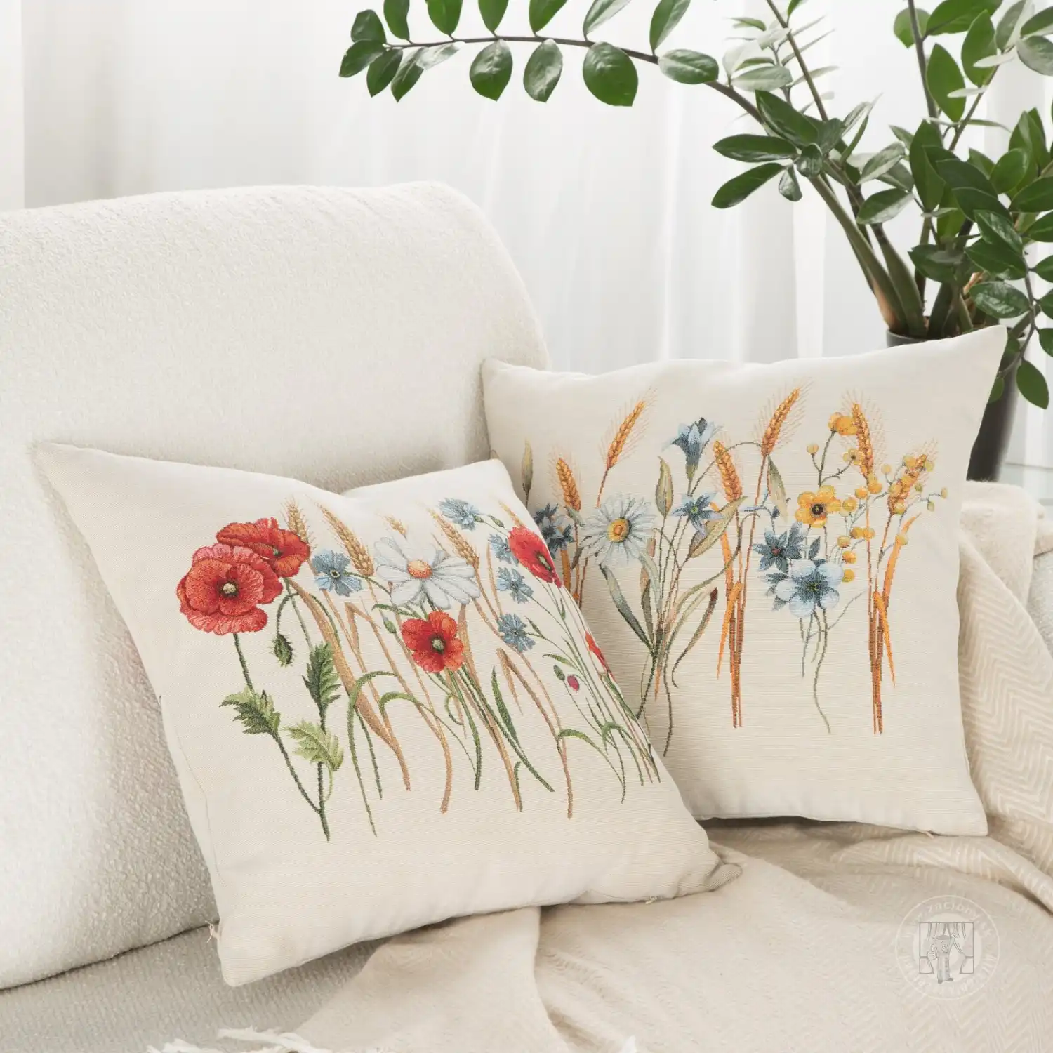 Obliečka na vankúš navrhnutá z hrubej gobelínovej tkaniny zdobená kvetinovým vzorom je dekoráciou pripomínajúcou vintage štýl. Hrubšia tkanina zaručuje krásny efekt a vzor dosiahnutý technikou tkania spôsobuje, že vankúš vyzerá krásne v interiéri v rustikálnom štýle aj v romantickej štylizácii.
