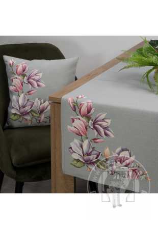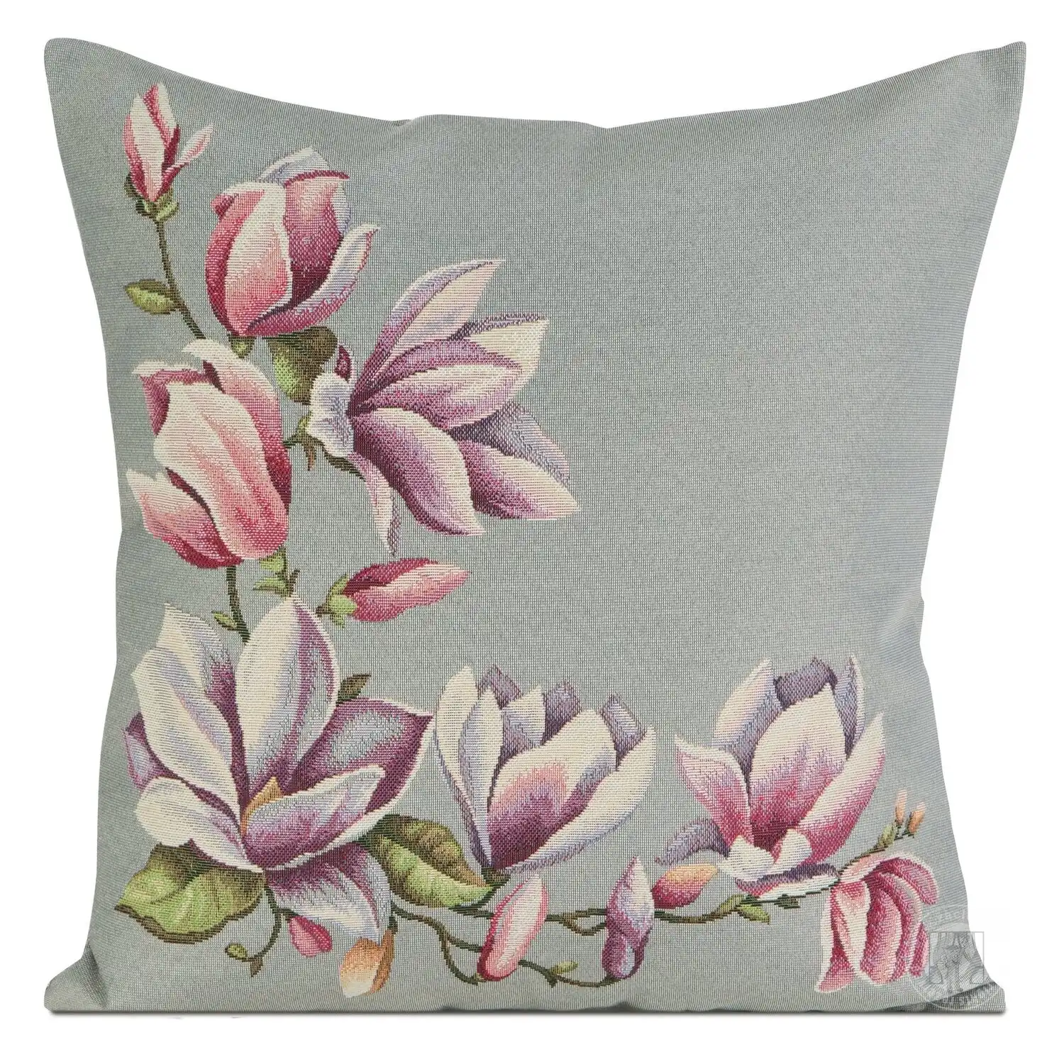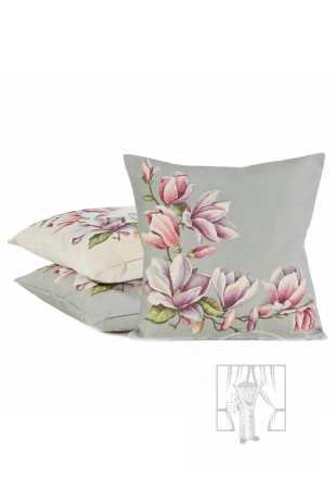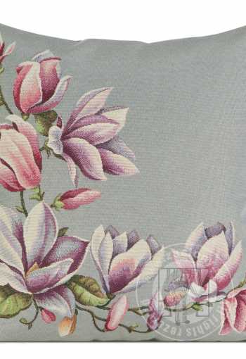 Gobelínová obliečka na vankúš 47x47cm sivá s magnóliami