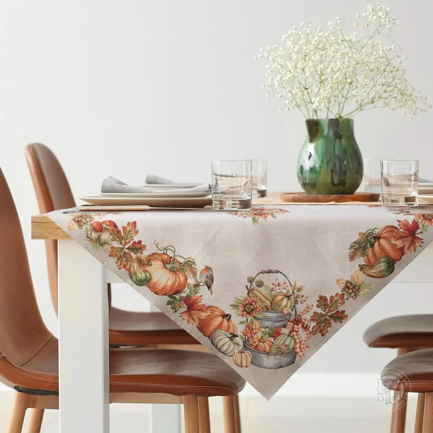 Gobelínový obrus 100x100cm s tekvicami a vtáčikmi