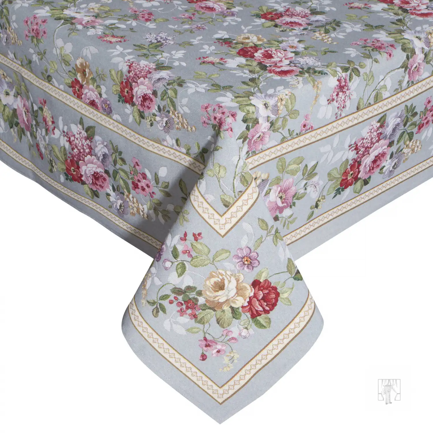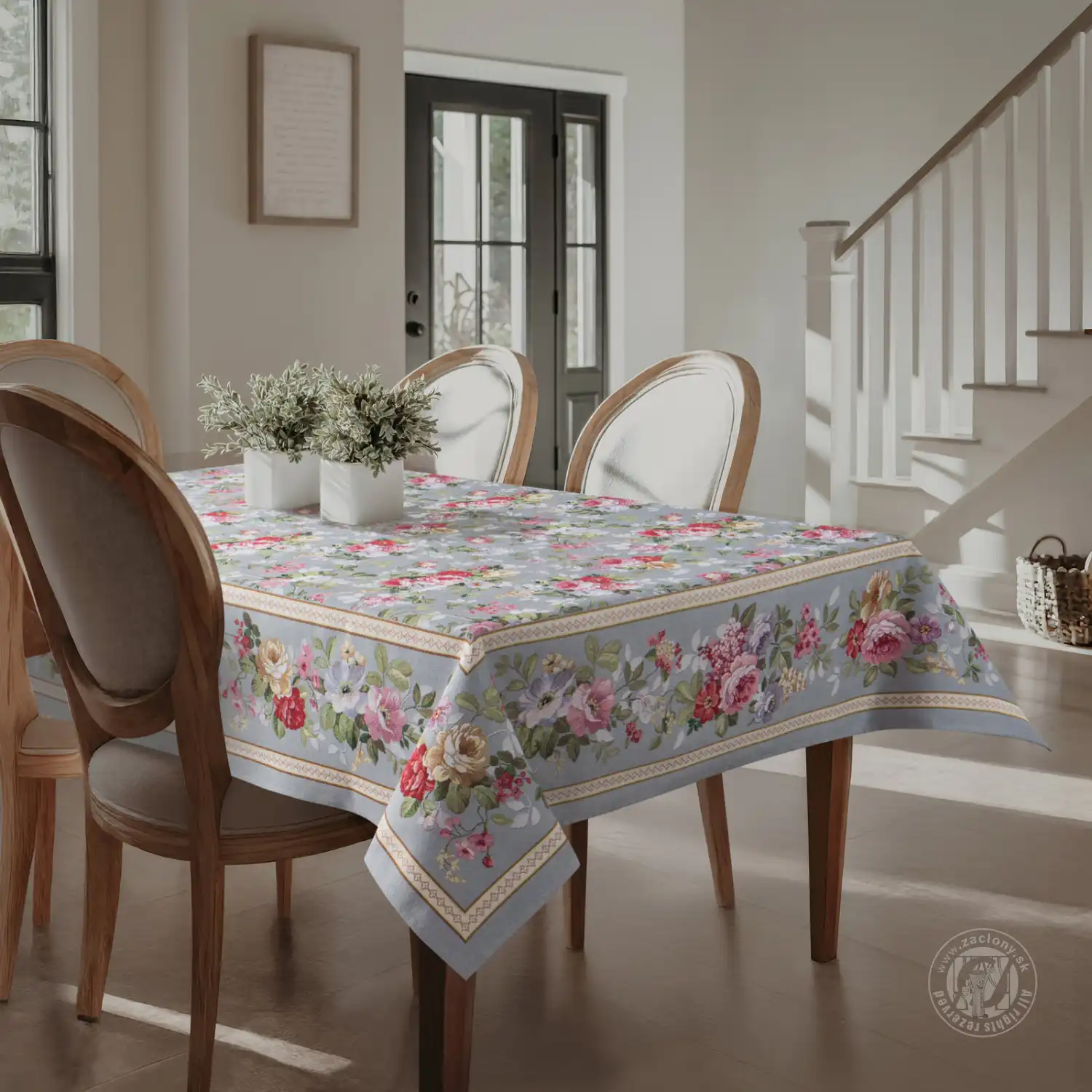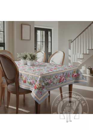 Gobelínový obrus 140x180cm sivý/kvetinový