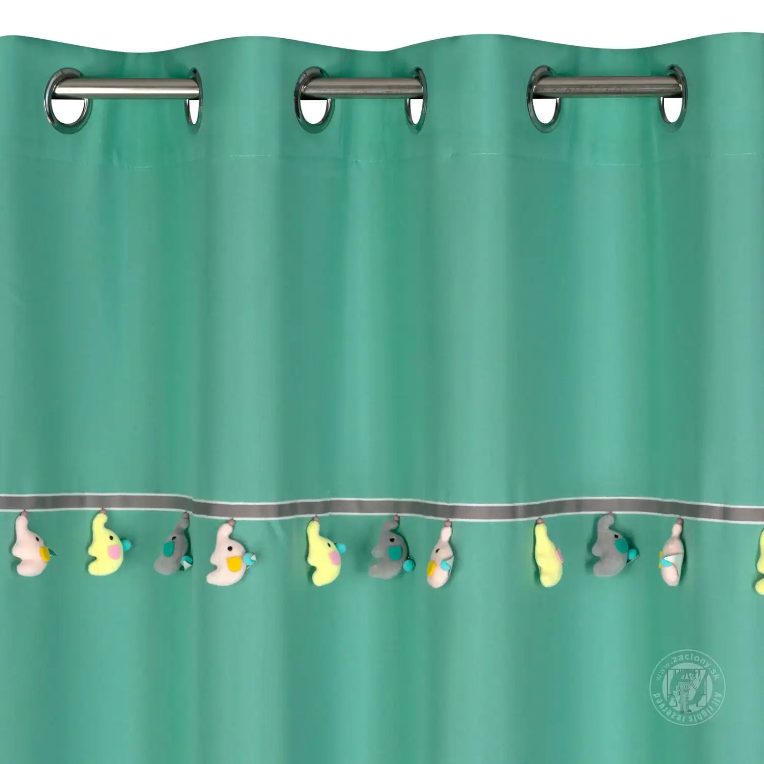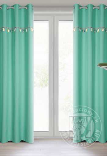 Záves KIDS na krúžkoch 140x250cm mätový so sloníkmi