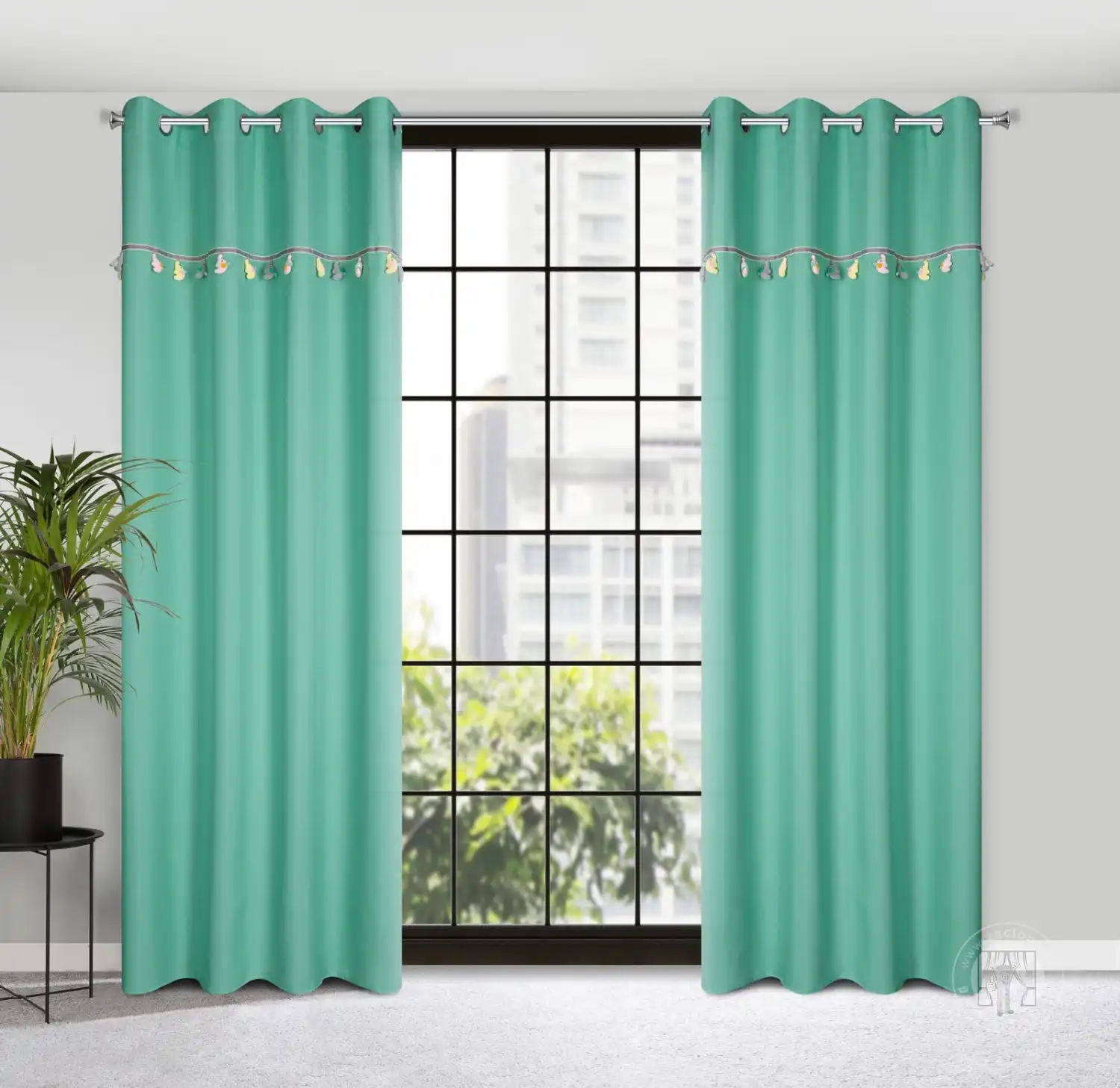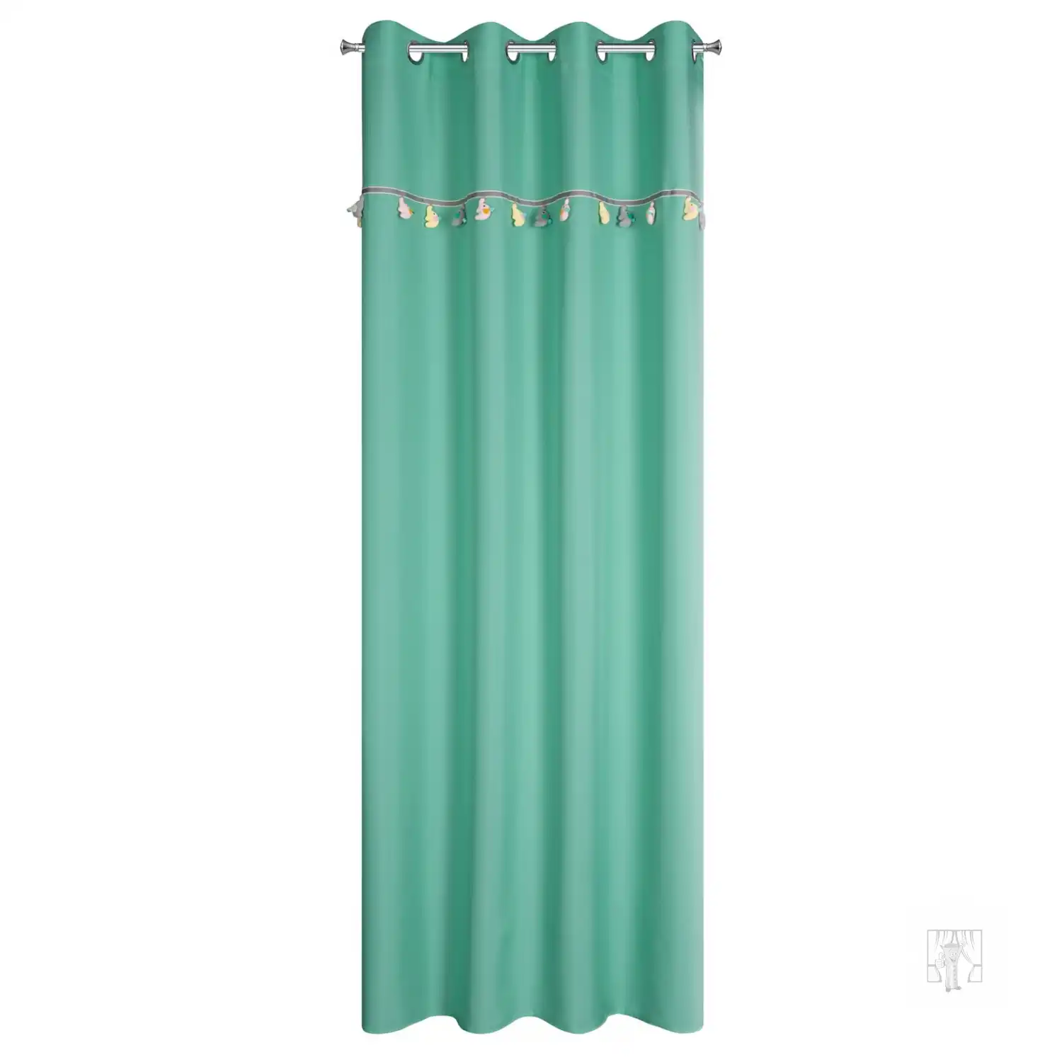 Urobte z dizajnu detskej izby radostný zážitok. Vrchnú časť závesu z kolekcie záclon a závesov do detskej izby zdobí ozdobný motív stuhy so zavesenými trojrozmernými aplikáciami. Tento mäkký záves nádherne oživí interiér detskej izby a dodá jej farbu a jedinečné čaro. Ľahká látka s ľanovou textúrou nezatieňuje miestnosť a umožňuje prenikanie prirodzeného svetla. Praktické očká pripevnené na vrchu uľahčujú výmenu dekorácií okien a po zavesení látka vytvára jemné, pravidelné vlny. Doprajte svojmu dieťaťu príjemné prekvapenie – vyberte si veselú a priateľskú dekoráciu do detskej izby.