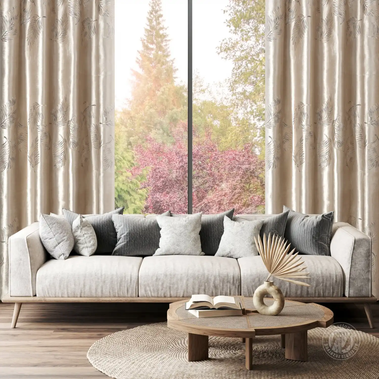Hotový zamatový záves IDALIA s jemným leskom je elegantnou a luxusnou voľbou pre každý interiér. Vyrobený z mäkkého zamatu, látka vyžaruje jemný lesk, ktorý miestnosti dodáva teplý a sofistikovaný nádych. Zdobený tieňovanou potlačou palmových listov dodáva priestoru tropický, no zároveň elegantný nádych a dokonale dopĺňa moderné a minimalistické interiéry. Očká umožňujú rýchle a jednoduché zavesenie záclony, čím vytvárajú skutočne štýlový a harmonický vzhľad. Je to perfektná voľba pre dodanie exotického šarmu a elegancie vášmu interiéru.