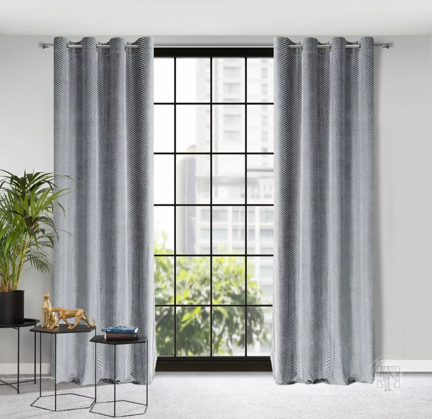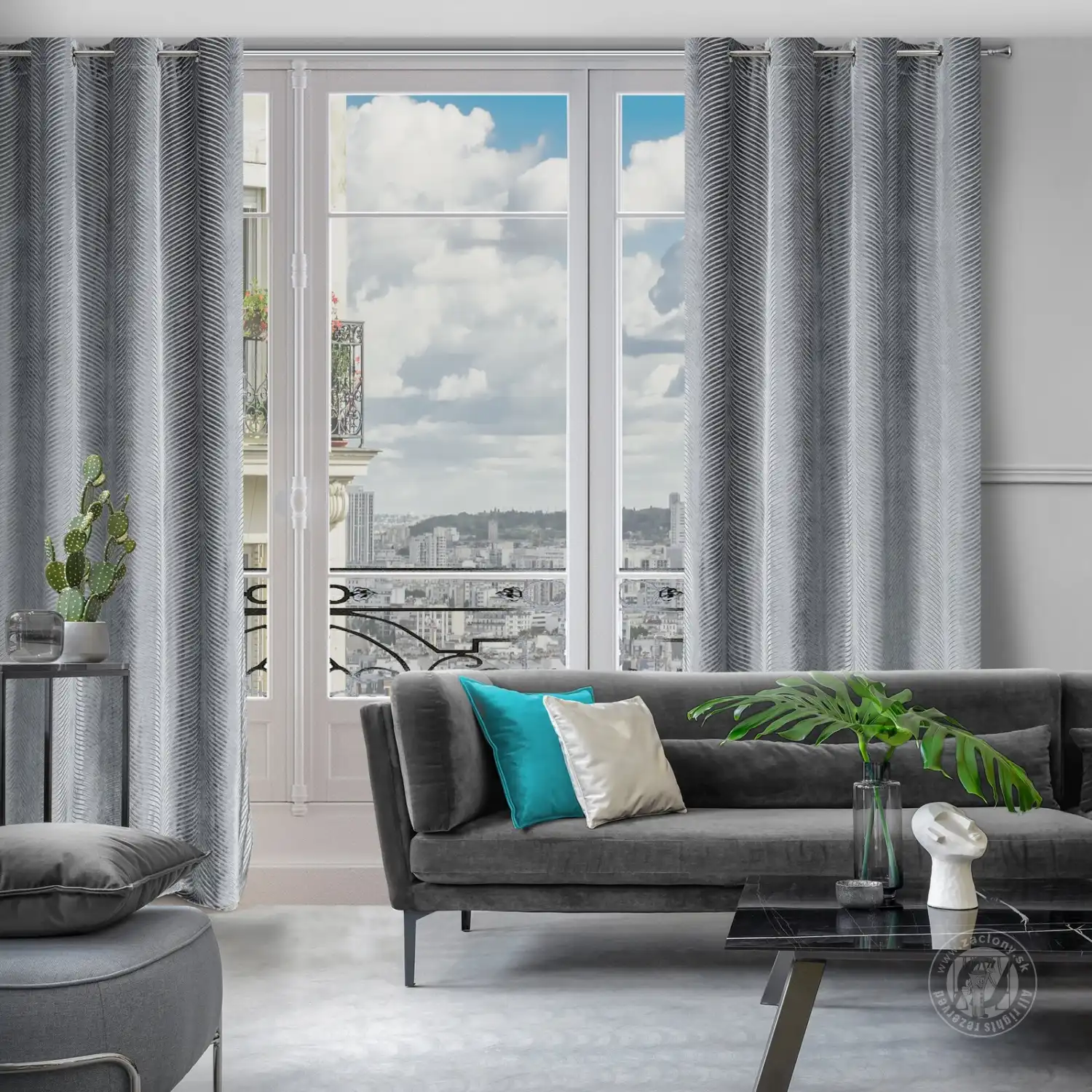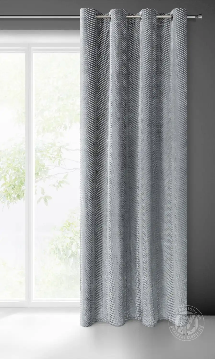 Záves LUSSI, vyrobený z trblietavého zamatu, láka svojou jemnosťou a prelamovaným vzorom. Splývavý žakárový vzor na látke bol vytvorený technikou tkania. Jemnosť, výrazný lesk a jednotná farebná schéma robia z tohto doplnku ideálny do interiérov zariadených v módnom, glamour štýle. Praktické očká uľahčujú zmenu dekorácie. Hrubší vzor je prekladaný tenšími, priehľadnými prvkami, čím vytvára zaujímavý prelamovaný efekt na okne.