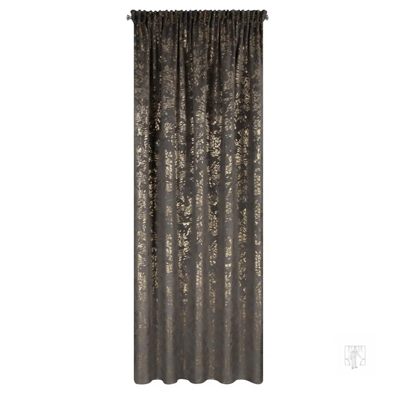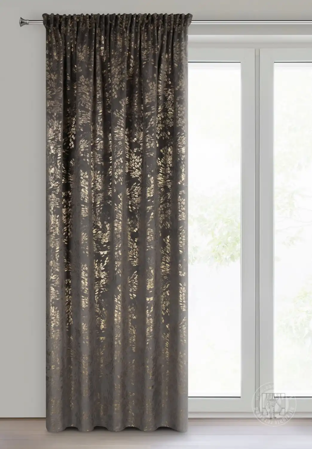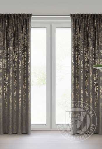 Zamatový záves FELIS je elegantná a štýlová dekorácia okna, ktorá dodá Vášmu interiéru luxusný nádych. Záves je vyrobený z vysoko kvalitného zamatu a pýši sa mäkkosťou a jemným leskom, ktorý krásne odráža svetlo a vytvára decentný, elegantný efekt. Lesklá potlač drobných lístkov na látke dodáva sofistikovanosť a prirodzenú ľahkosť a prináša do interiéru jemný prírodný motív. Záves je vybavený riasiacou páskou, ktorá umožňuje jednoduché a estetické zavesenie a vytvára dokonalé, rovnomerné záhyby. Vďaka tomu záves nielenže vyzerá skvele, ale látka tiež elegantne a harmonicky splýva.