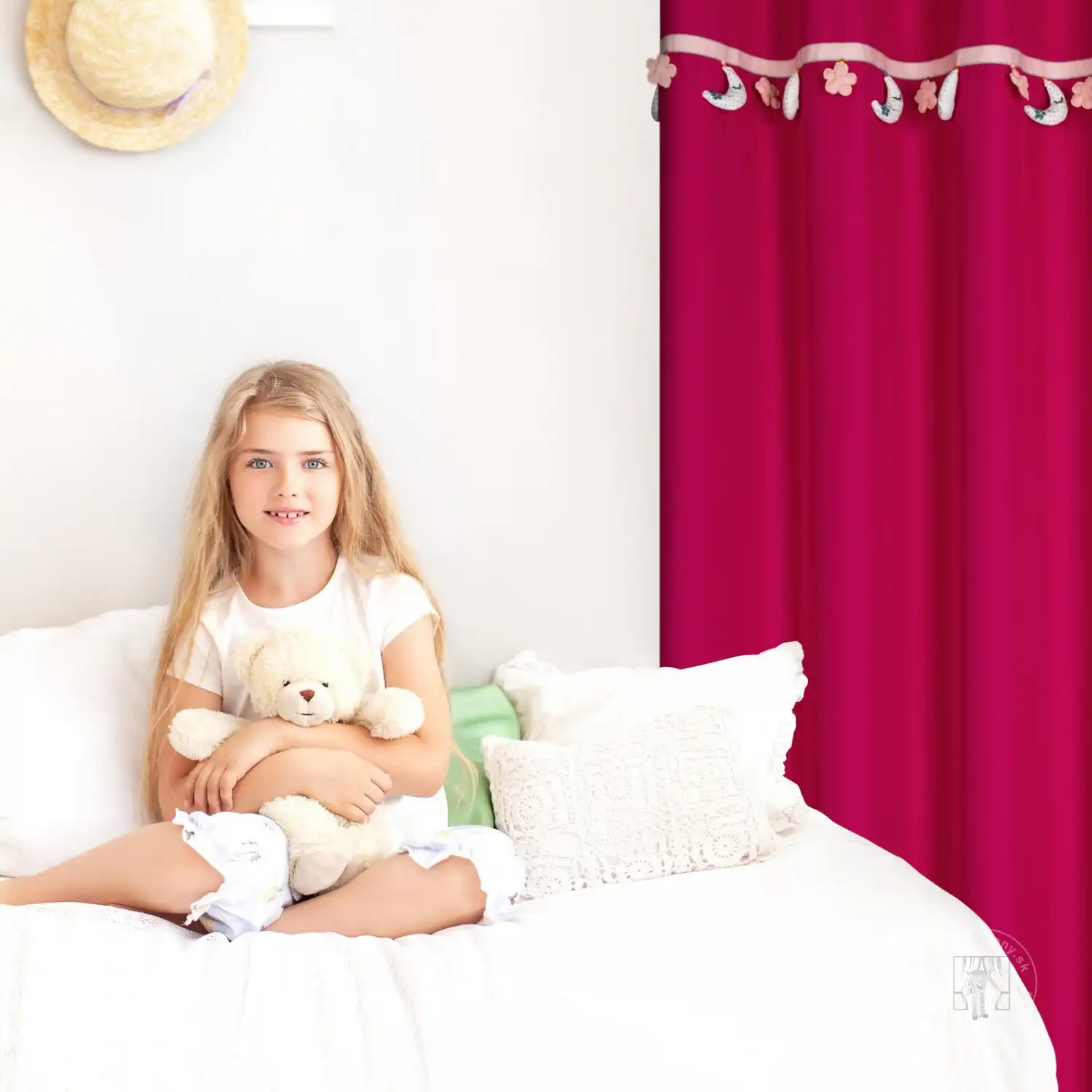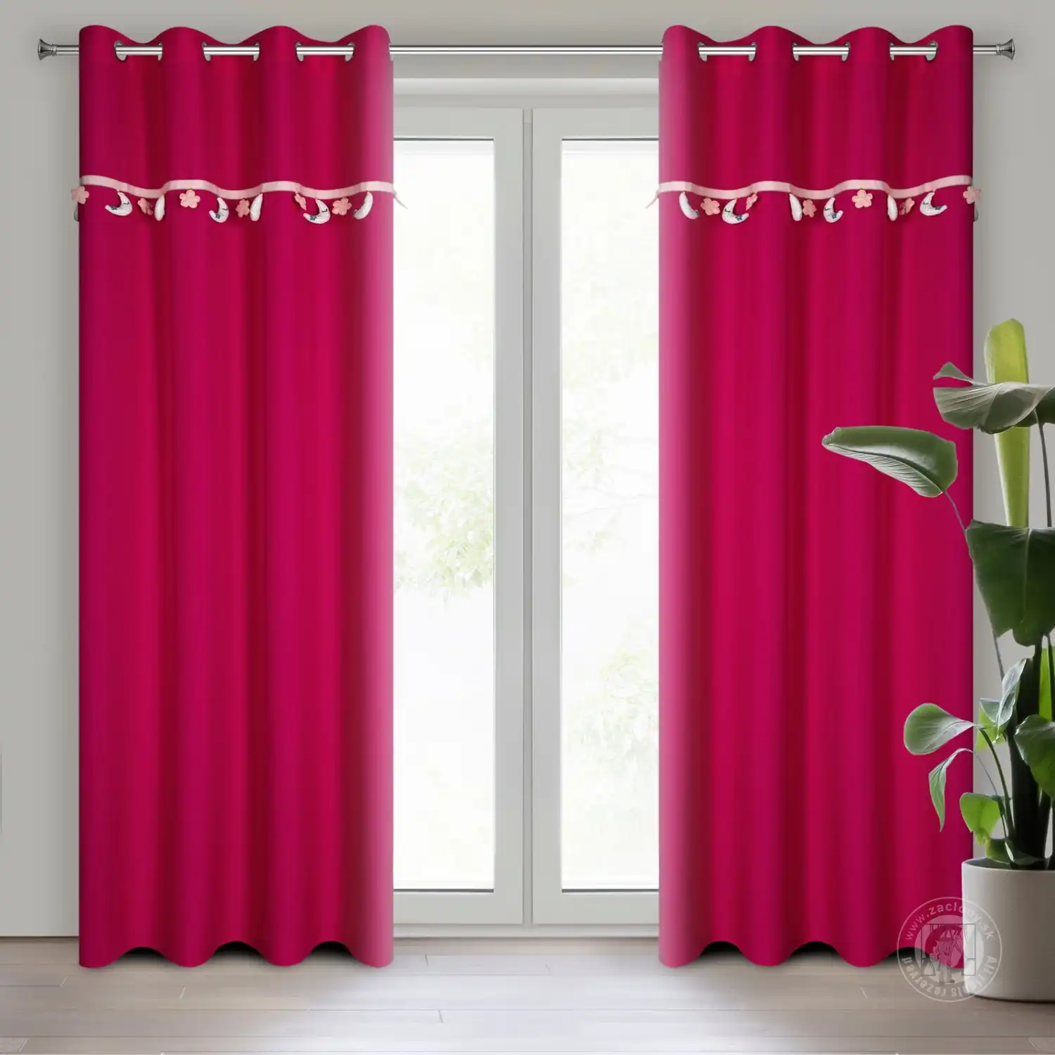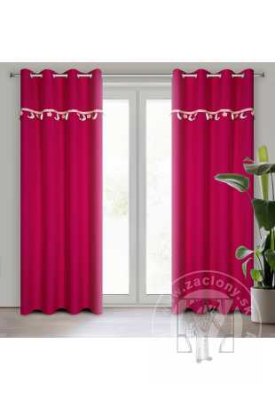 Urobte z dizajnu detskej izby radostný zážitok. Vrchnú časť závesu z kolekcie záclon a závesov do detskej izby zdobí ozdobný motív stuhy so zavesenými trojrozmernými aplikáciami. Tento mäkký záves nádherne oživí interiér detskej izby a dodá jej farbu a jedinečné čaro. Ľahká látka s ľanovou textúrou nezatieňuje miestnosť a umožňuje prenikanie prirodzeného svetla. Praktické očká pripevnené na vrchu uľahčujú výmenu dekorácií okien a po zavesení látka vytvára jemné, pravidelné vlny. Doprajte svojmu dieťaťu príjemné prekvapenie – vyberte si veselú a priateľskú dekoráciu do detskej izby.