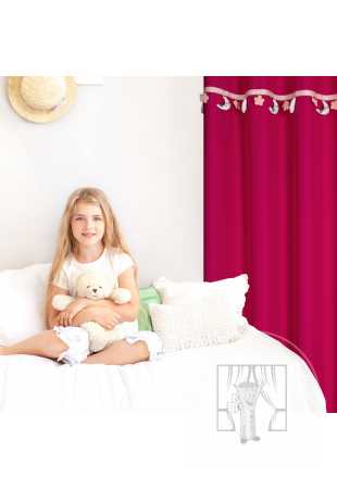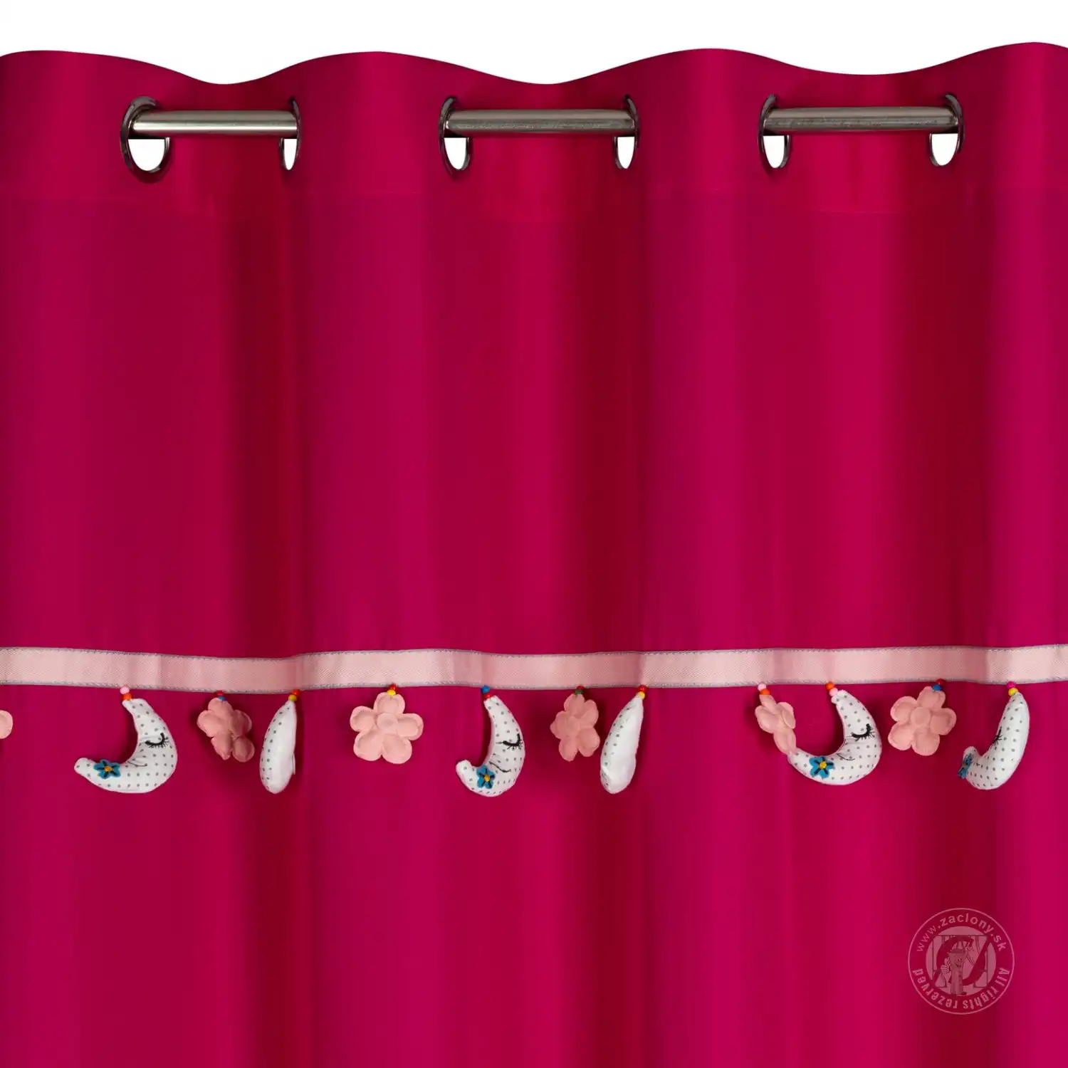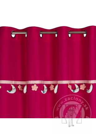 Záves MOON na krúžkoch 140x250cm tmavoružový s mesiačikmi