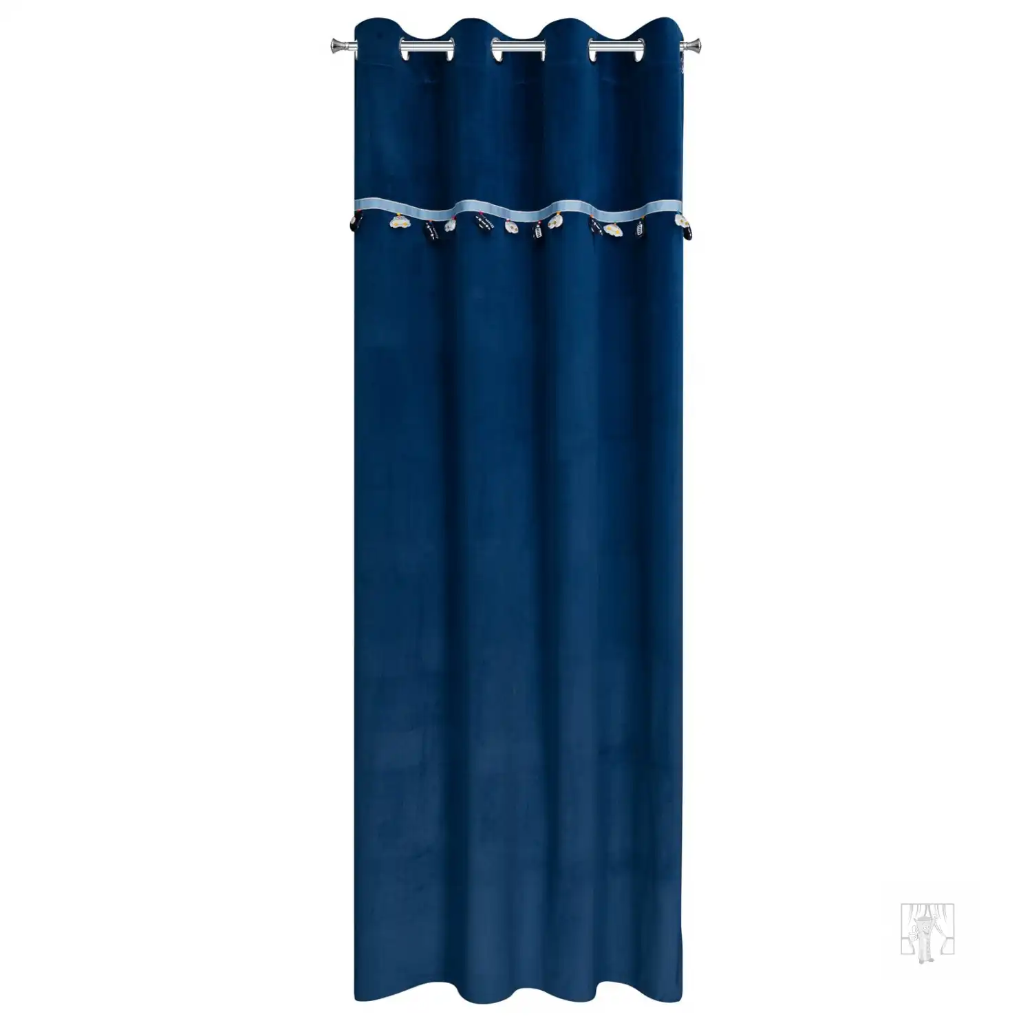 Urobte z dizajnu detskej izby radostný zážitok. Vrchnú časť závesu z kolekcie záclon a závesov do detskej izby zdobí ozdobný motív stuhy so zavesenými trojrozmernými aplikáciami. Tento mäkký záves nádherne oživí interiér detskej izby a dodá jej farbu a jedinečné čaro. Ľahká látka s ľanovou textúrou nezatieňuje miestnosť a umožňuje prenikanie prirodzeného svetla. Praktické očká pripevnené na vrchu uľahčujú výmenu dekorácií okien a po zavesení látka vytvára jemné, pravidelné vlny. Doprajte svojmu dieťaťu príjemné prekvapenie – vyberte si veselú a priateľskú dekoráciu do detskej izby.