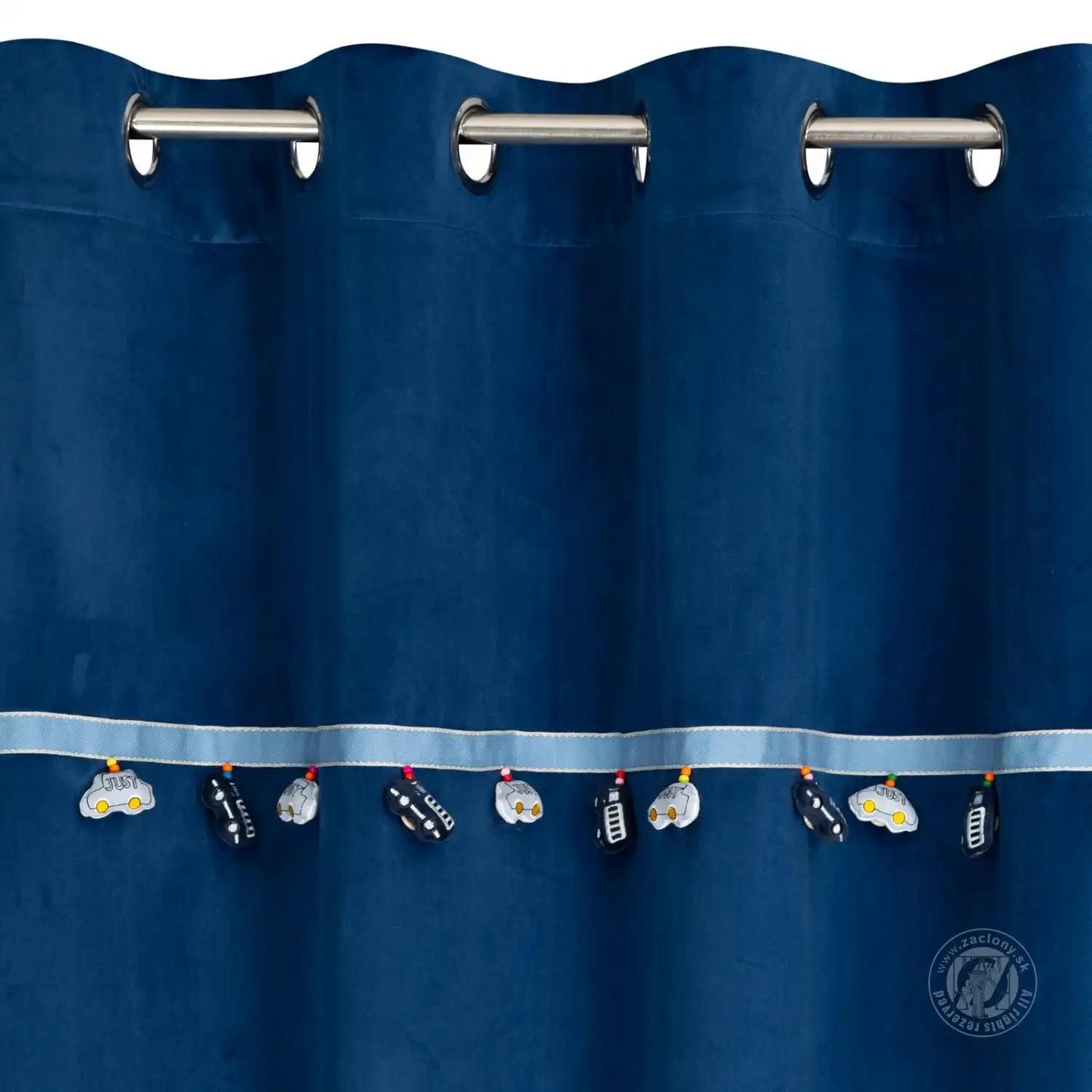 Záves CAR na krúžkoch 140x250cm granátový s autíčkami