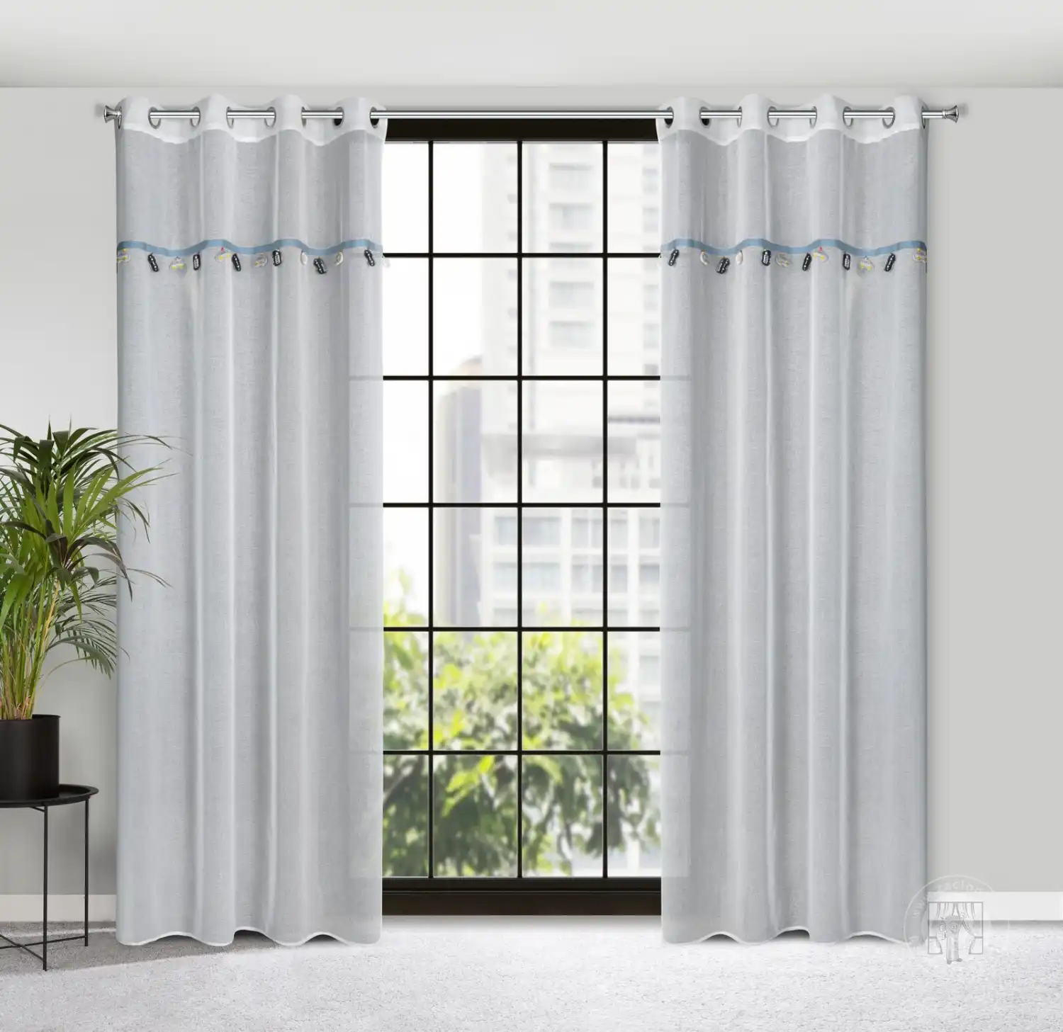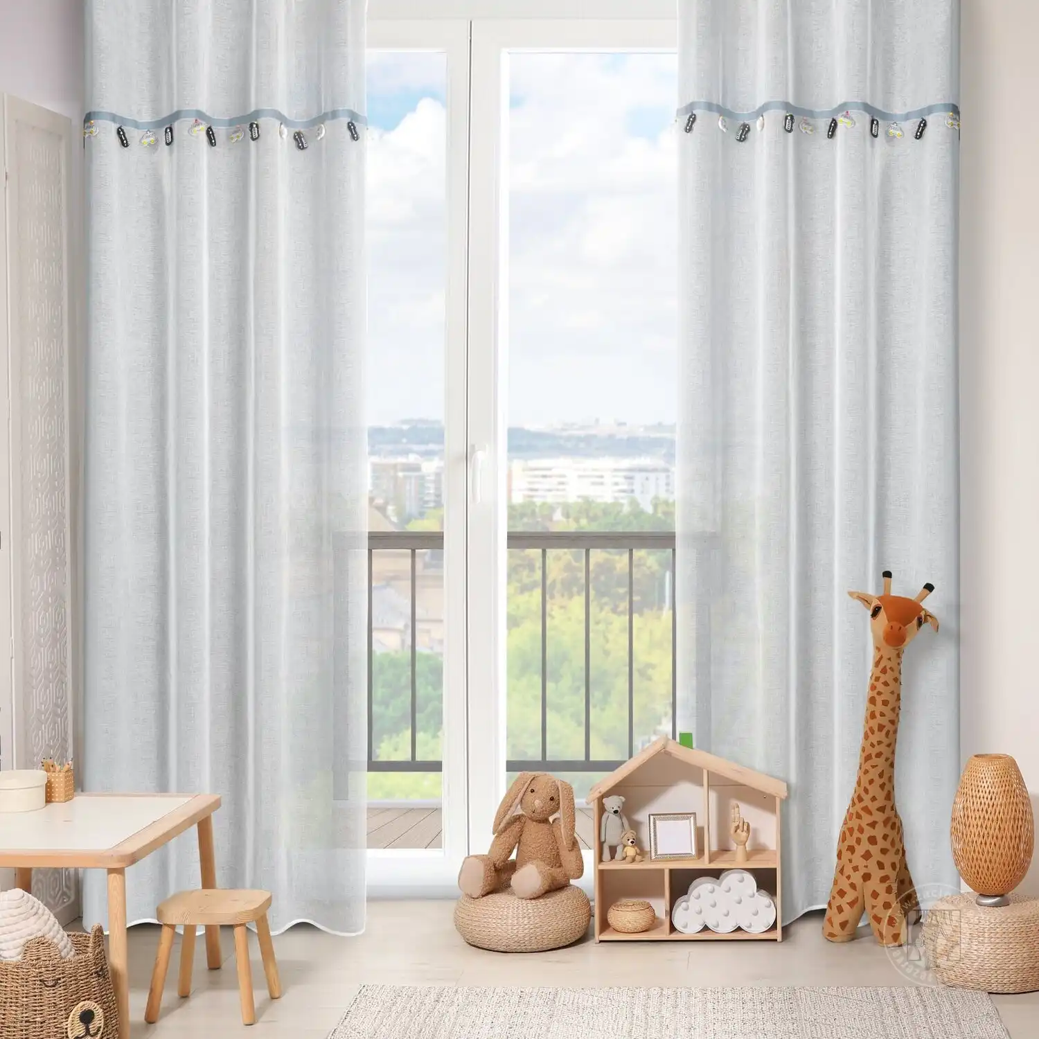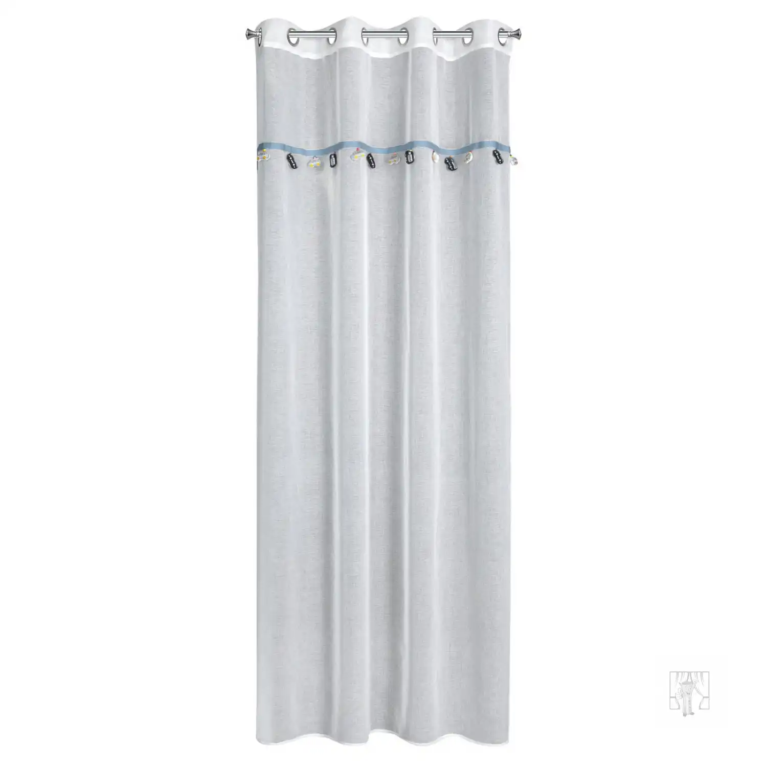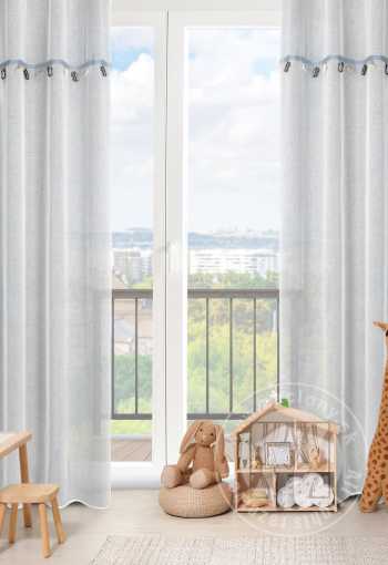 Urobte z dizajnu detskej izby radostný zážitok. Vrchnú časť závesu z kolekcie záclon a závesov do detskej izby zdobí ozdobný motív stuhy so zavesenými trojrozmernými aplikáciami. Táto očarujúca záclona nádherne oživí interiér detskej izby a dodá jej jedinečné čaro. Ľahká a vzdušná látka krásne zdobí okno bez toho, aby zatienila interiér a umožnila prenikanie prirodzeného svetla. Praktické očká pripevnené na vrchu uľahčujú výmenu dekorácií okien a po zavesení látka vytvára jemné, pravidelné vlny. Doprajte svojmu dieťaťu príjemné prekvapenie – vyberte si veselú a priateľskú dekoráciu do detskej izby.