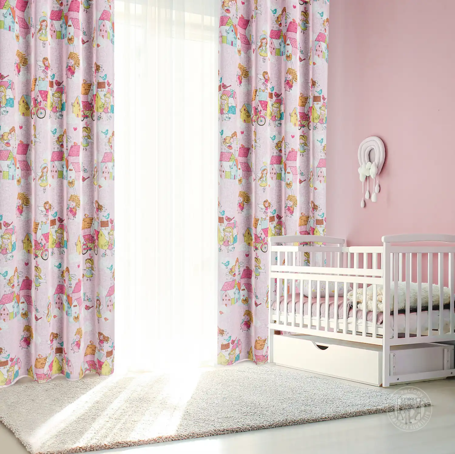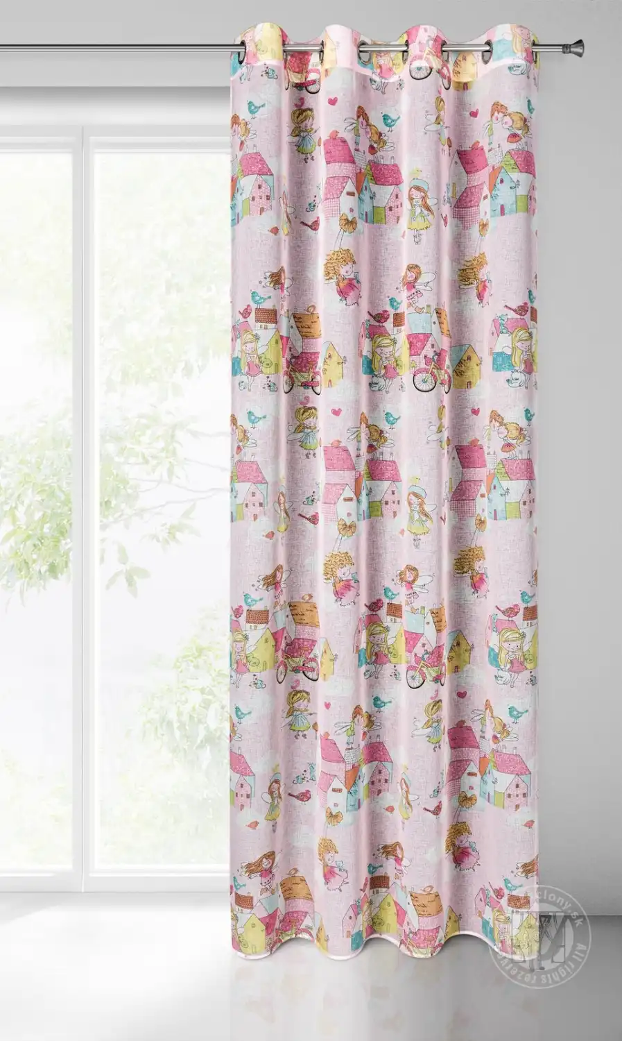 Príjemný motív elfov zdobí okennú dekoráciu POLLY, vyrobenú z ľahkej, polopriehľadnej gázy. Tento doplnok nádherne oživí interiér detskej izby, dodá mu farbu a jedinečné čaro. Praktické očká pripevnené v hornej časti uľahčujú výmenu okenných dekorácií a po zavesení látka vytvára jemné, pravidelné vlny. Ľahká látka jemne filtruje slnečné svetlo, osvetľuje interiér prirodzeným svetlom a zároveň poskytuje súkromie a príjemnú atmosféru. Túto dekoráciu môžete použiť buď ako jemnú záclonu alebo ako ľahký záves.