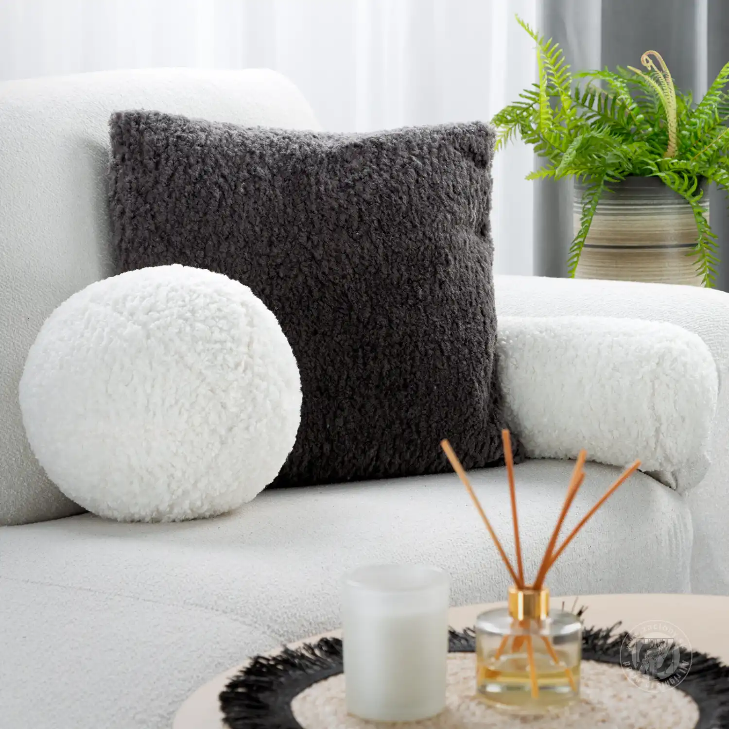 Tento jednofarebný guľovitý vankúš je elegantným a pohodlným doplnkom každého interiéru. Jeho hladký, jednofarebný povrch z mäkkej buklé látky poskytuje nielen estetickú príťažlivosť, ale aj príjemný hmatový zážitok. Hoci sa buklé látka zdá byť jemná a krehká, v skutočnosti je pevná a odolná. Dobre odoláva každodennému používaniu a slučky sú odolné a nezatrhávajú sa. Vďaka tomu je látka vhodná aj do domácností so zvieratami. Okrúhly tvar vankúša dodáva moderný nádych, zatiaľ čo výplň zaručuje plnosť a pohodlie.