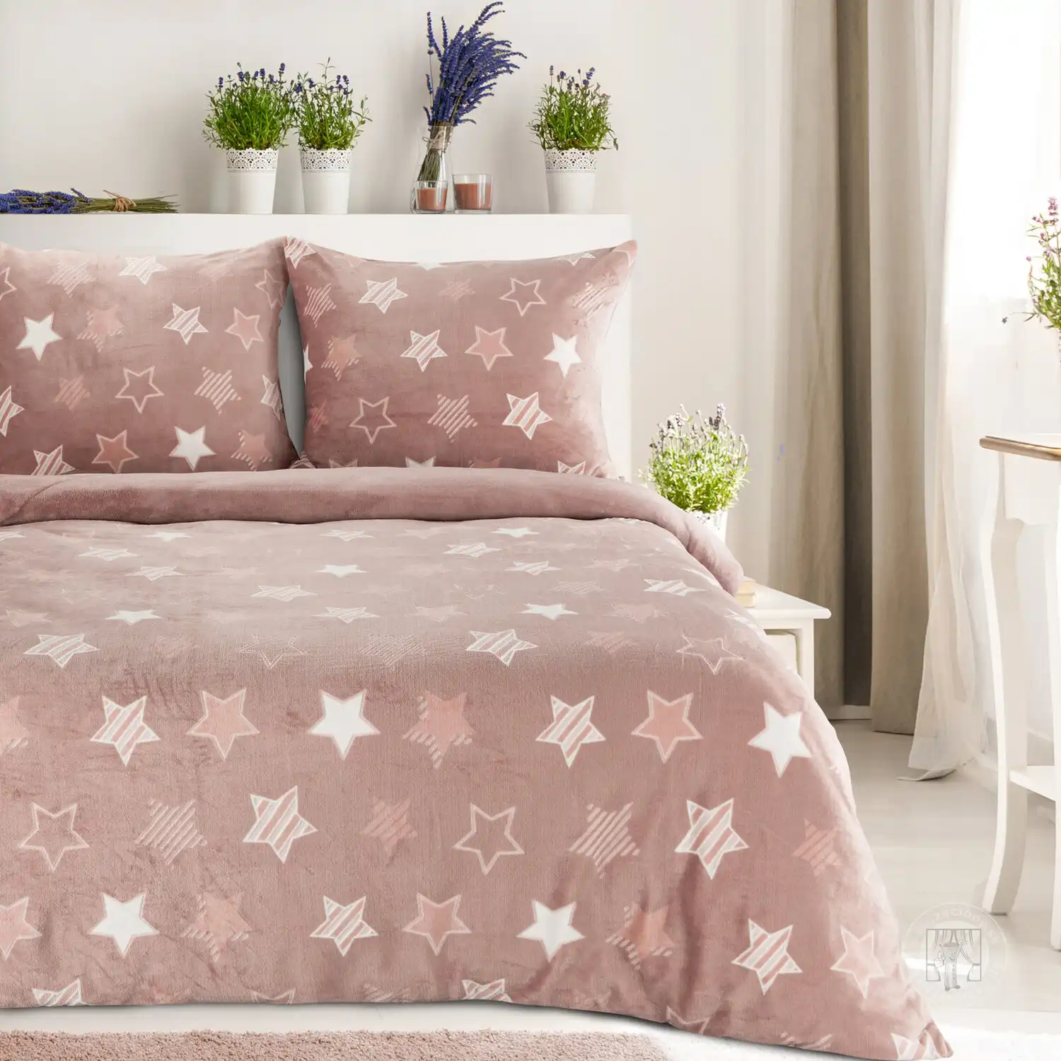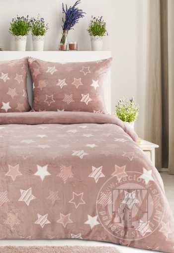 Posteľná bielizeň flísová FLANO s hviezdami 140x200cm + 70x90cm, púdrová