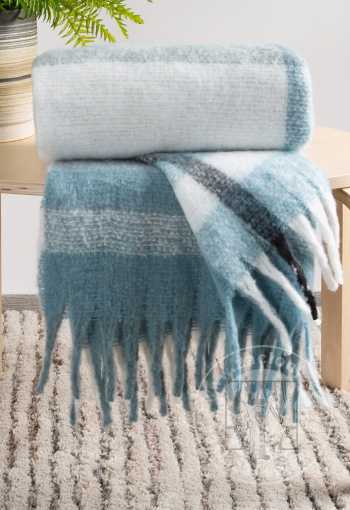 Táto modrobiela deka MOHER je vyrobená z mäkkej a nadýchanej mohérovej látky. Táto kockovaná deka s mäkkými strapcami na oboch stranách dodá charakter každej spálni. Perfektne poslúži aj ako prehoz.