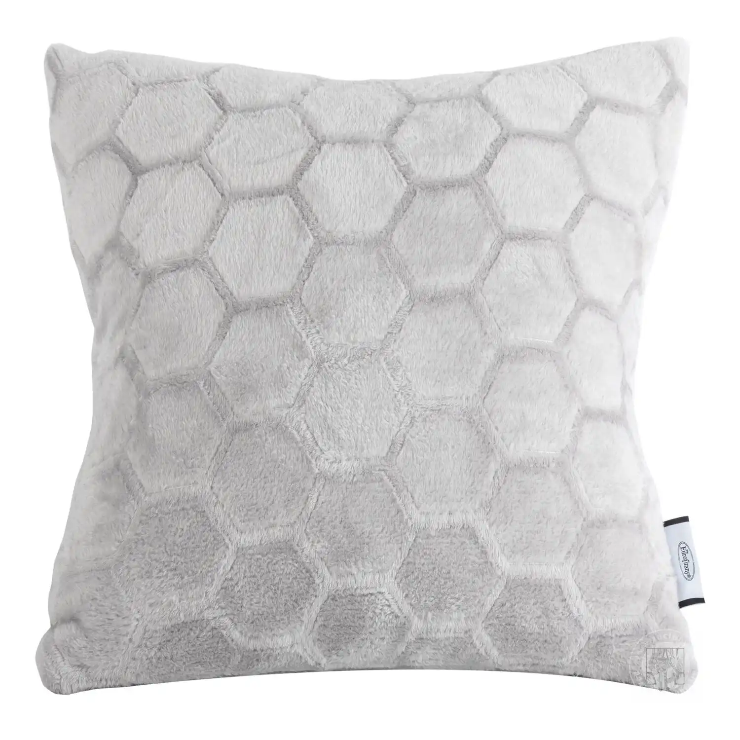 Svetlosivá dekoratívna obliečka na vankúš ZOE s geometrickým vzorom. Jemná mäkkosť, decentný lesk a precízna povrchová úprava z nej robia perfektný doplnok do každého moderného a elegantného interiéru. Praktický zips všitý na jednej strane umožňuje jednoduchú zmenu dekorácie.