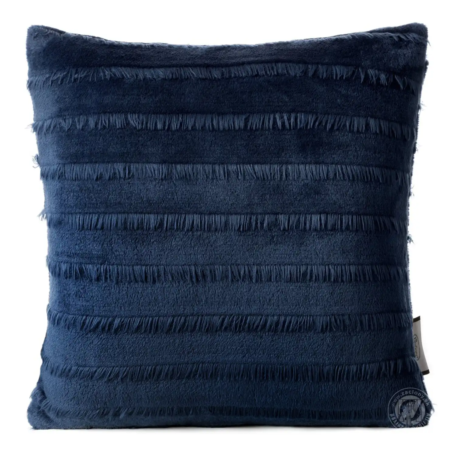 Tmavomodrá dekoratívna obliečka na vankúš EMI s drobnými strapcami. Jemná mäkkosť, decentný lesk a precízna povrchová úprava z nej robia perfektný doplnok do každého moderného a elegantného interiéru. Praktický zips všitý na jednej strane umožňuje jednoduchú zmenu dekorácie.