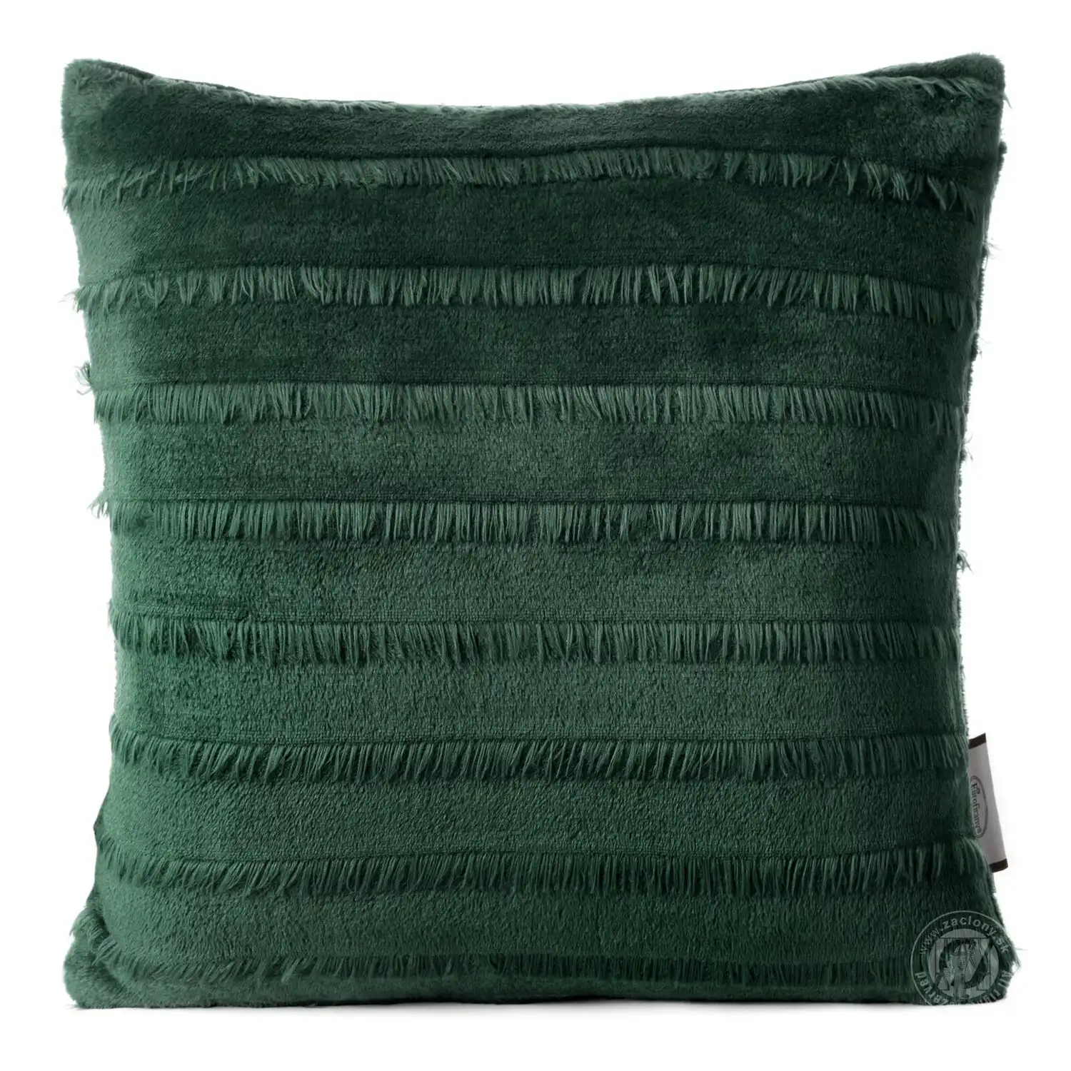 Zelená dekoratívna obliečka na vankúš EMI s drobnými strapcami. Jemná mäkkosť, decentný lesk a precízna povrchová úprava z nej robia perfektný doplnok do každého moderného a elegantného interiéru. Praktický zips všitý na jednej strane umožňuje jednoduchú zmenu dekorácie.