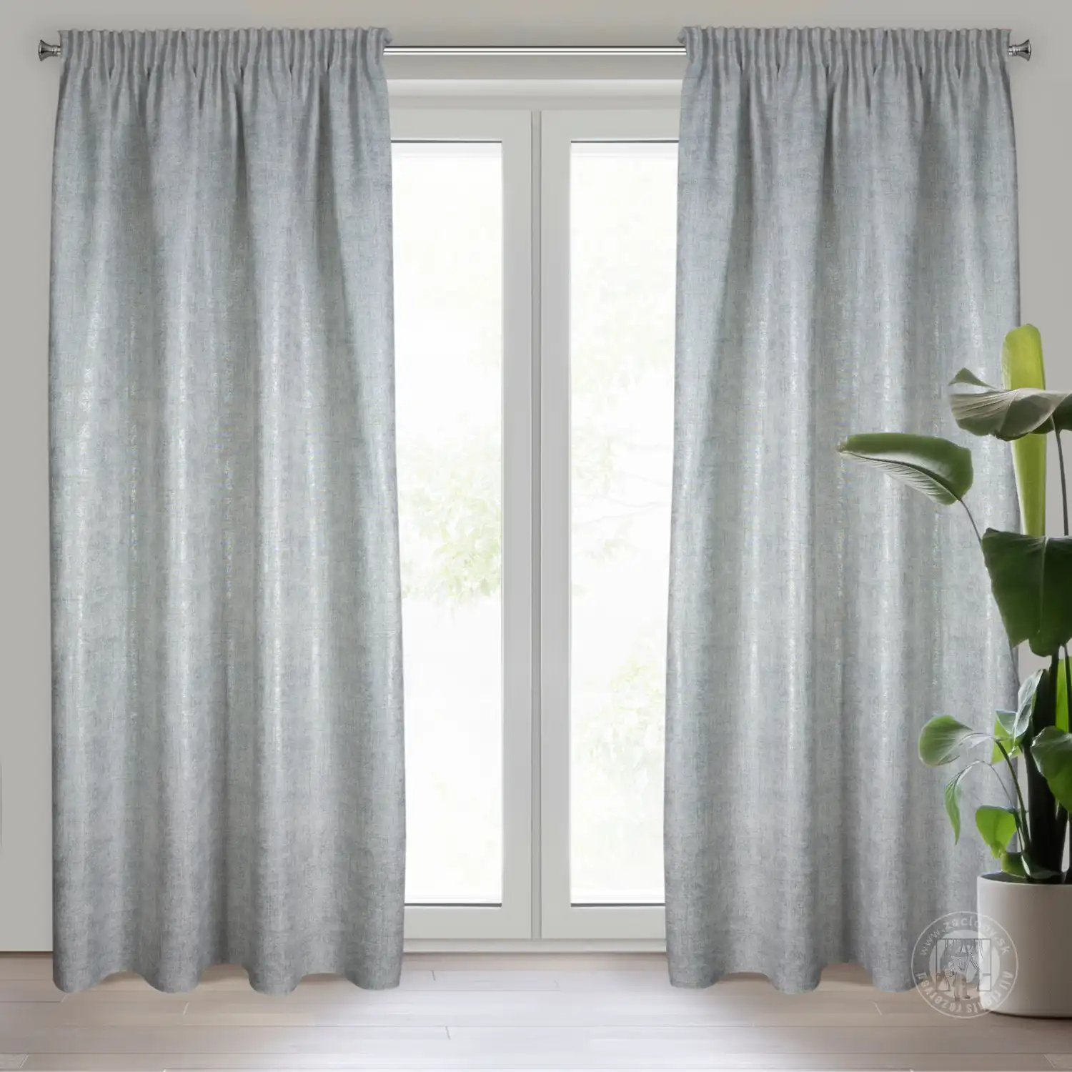 Záves BLANKA je spojením ekologického štýlu a pôvabu. Výrazná melanžová látka v ekologickom štýle s výraznou ľanovou väzbou je ozdobená striebornou potlačou. Tento záves určite osloví milovníkov romantického dekoru. Obzvlášť dobre sa hodí do klasických aj módnych interiérov v ekologickom štýle. Voľne tkaný záves jemne zakrýva okno, jemne filtruje slnečné svetlo a vytvára príjemnú atmosféru v interiéri. Praktická riasovacia páska pripevnená na vrchnej strane látky zaisťuje rýchlu a jednoduchú zmenu výzdoby a umožňuje závesu jemne splývať z tyče, čo uľahčuje jeho aranžovanie do symetrických vĺn.
