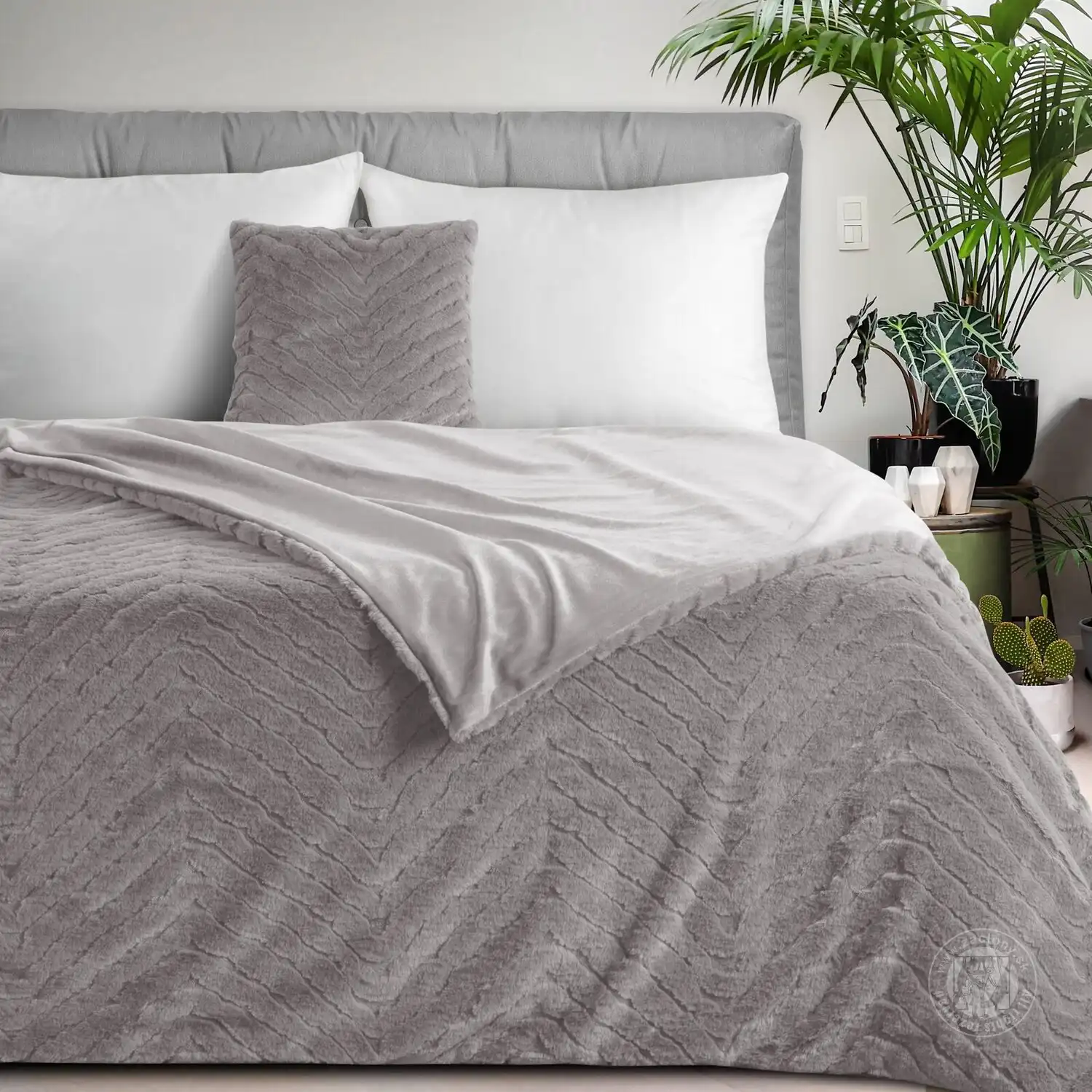 Mäkká obojstranná deka KATE je vyrobená z látky, ktorá je neuveriteľne mäkká, nadýchaná a príjemná na dotyk. Nadýchanosť látky ju robí veľmi teplou a útulnou. Hoci sa zdá byť jemná, látka je v skutočnosti pevná a odolná, dobre odoláva každodennému používaniu. Rubová strana prikrývky je z hladkého flísu. Tento doplnok sa krásne hodí do moderných spální a možno ho použiť ako dekoratívny doplnok do obývačky, na terasu či balkón.