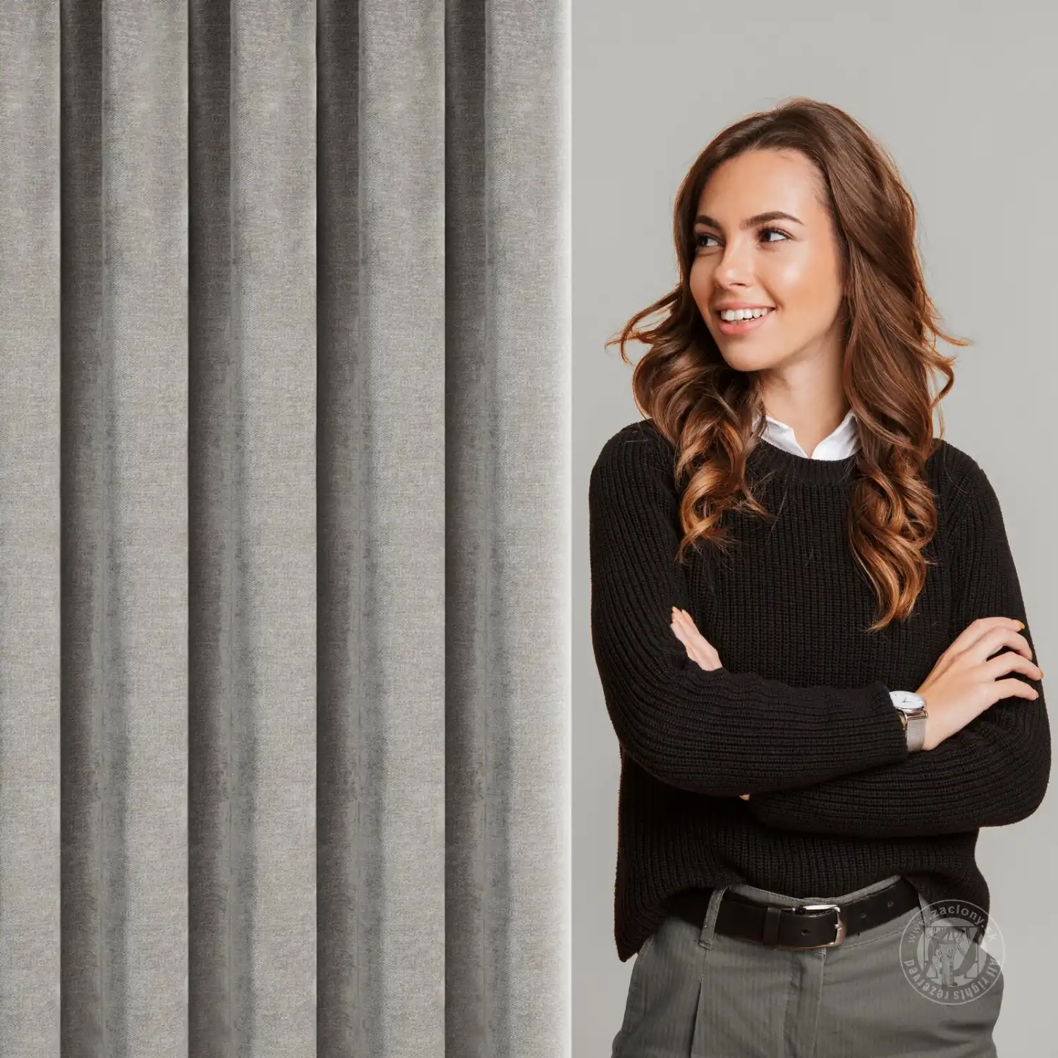 Záves NESKA so ženilkovou štruktúrou je perfektným doplnkom do interiérov zariadených v prírodnom alebo boho štýle. Látka s výraznou väzbou a jemnou textúrou prináša do miestnosti teplo a útulnosť. Riasiaca páska s tunelom umožňuje rôzne typy zavesenia.